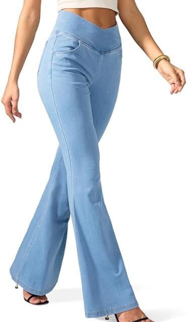 ADBUCKS Flare Jeans for Women Crossover High Waisted Bell Bottom Jeans Trendy Yoga Pants Stretchy Flare Leggings with Pockets (in, Numeric, 34, Icyblue)