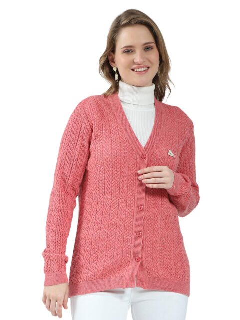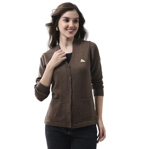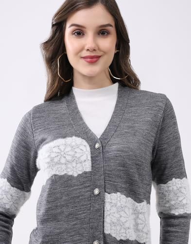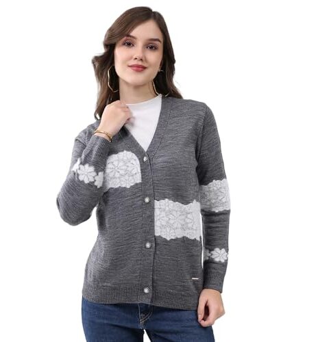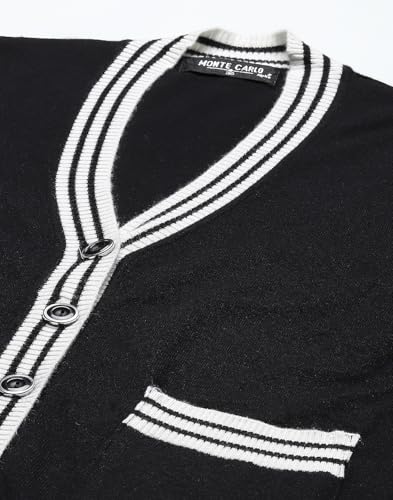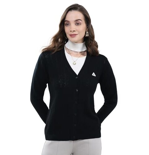 Monte Carlo Women’s Regular Fit Cardigan | Self Design Pattern | Button Closure with Full Sleeve V Neck Winter Cardigan for Womens Black M (Pack Of-1)