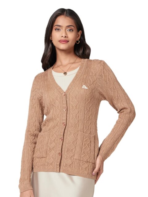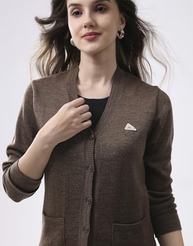 Monte Carlo Women V Neck Self Design Cardigan | Regular Fit Full Sleeve Knitwear | Elegant Winter Sweater for Office & Casual Outfits Beige XXL (Pack of 1)