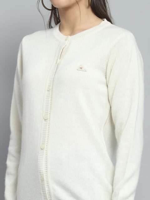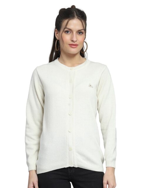Monte Carlo Womens Solid Off White Round Neck Full Sleeve Cardigan_1240729RN-101