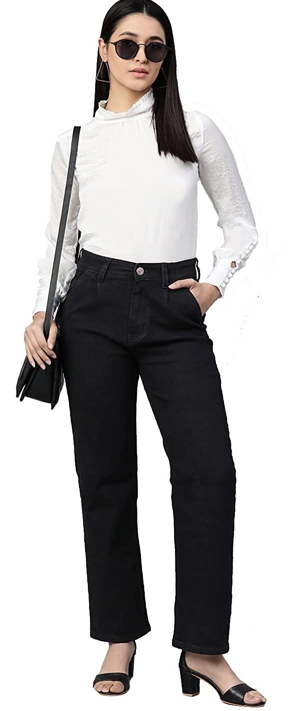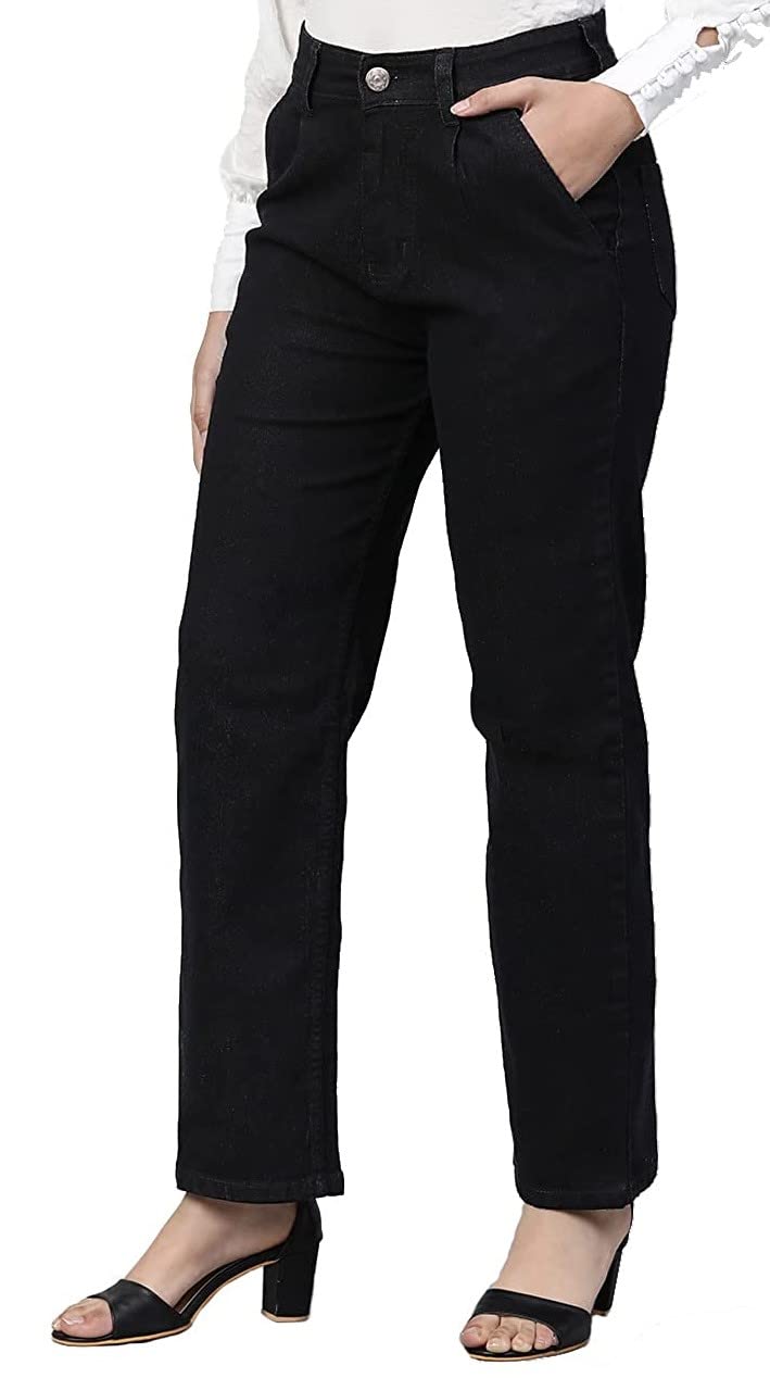 ADBUCKS Women Straight Fit High Rise Jeans (28, Black)