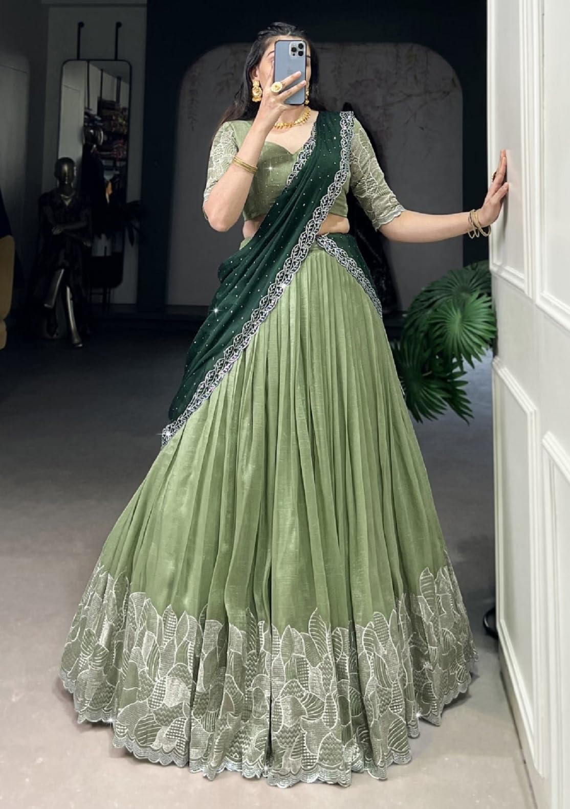 Aika Creation Women’s Chiffon Embroidered Lehenga Choli Panvel LH Pista