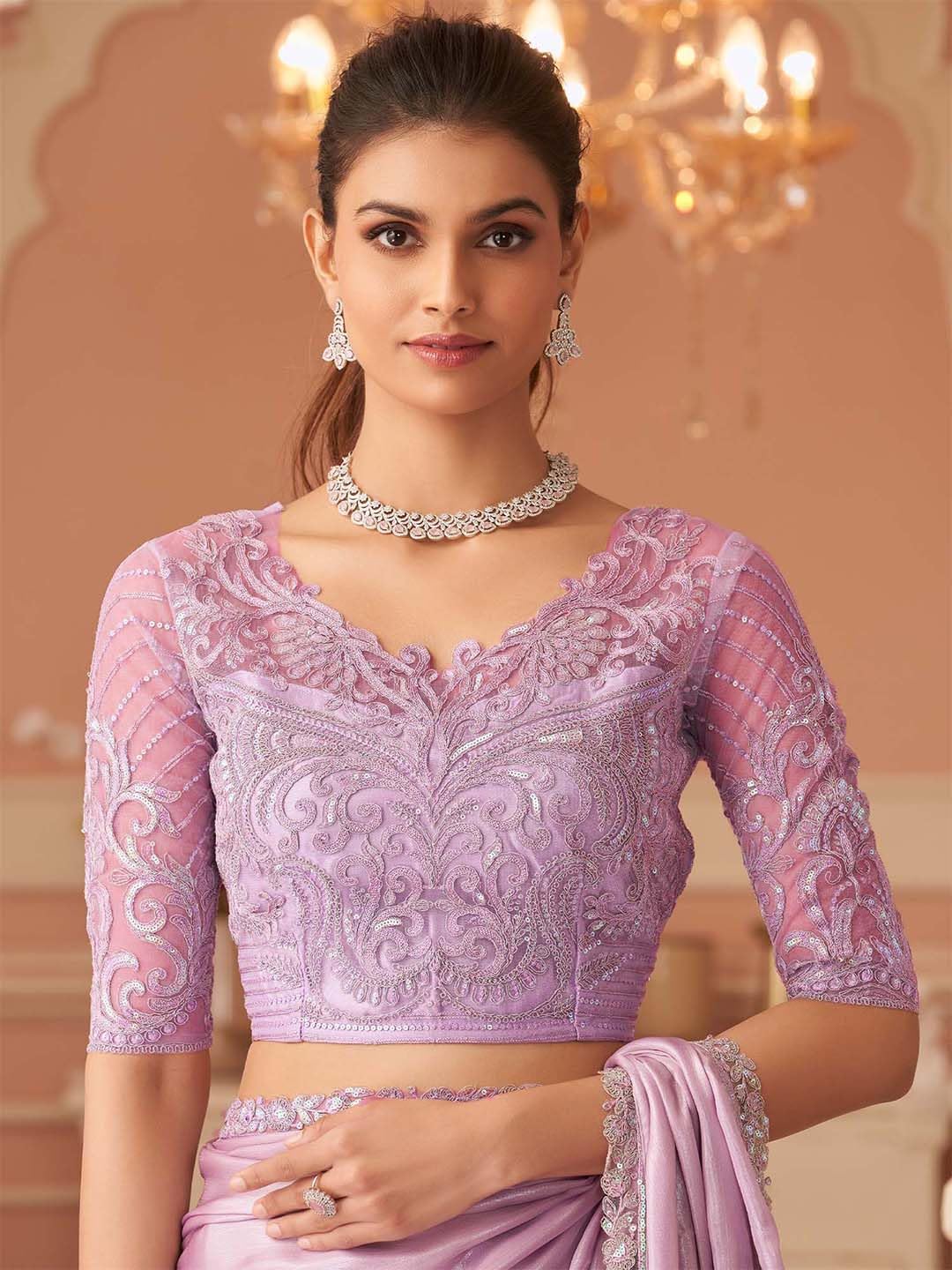 - Color: Lavendar Saree || Lavendar Blouse