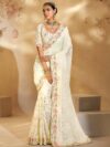 - DESIGN: Traditional Kashmiri style saree featuring intricate patterns and rich cultural aesthetics