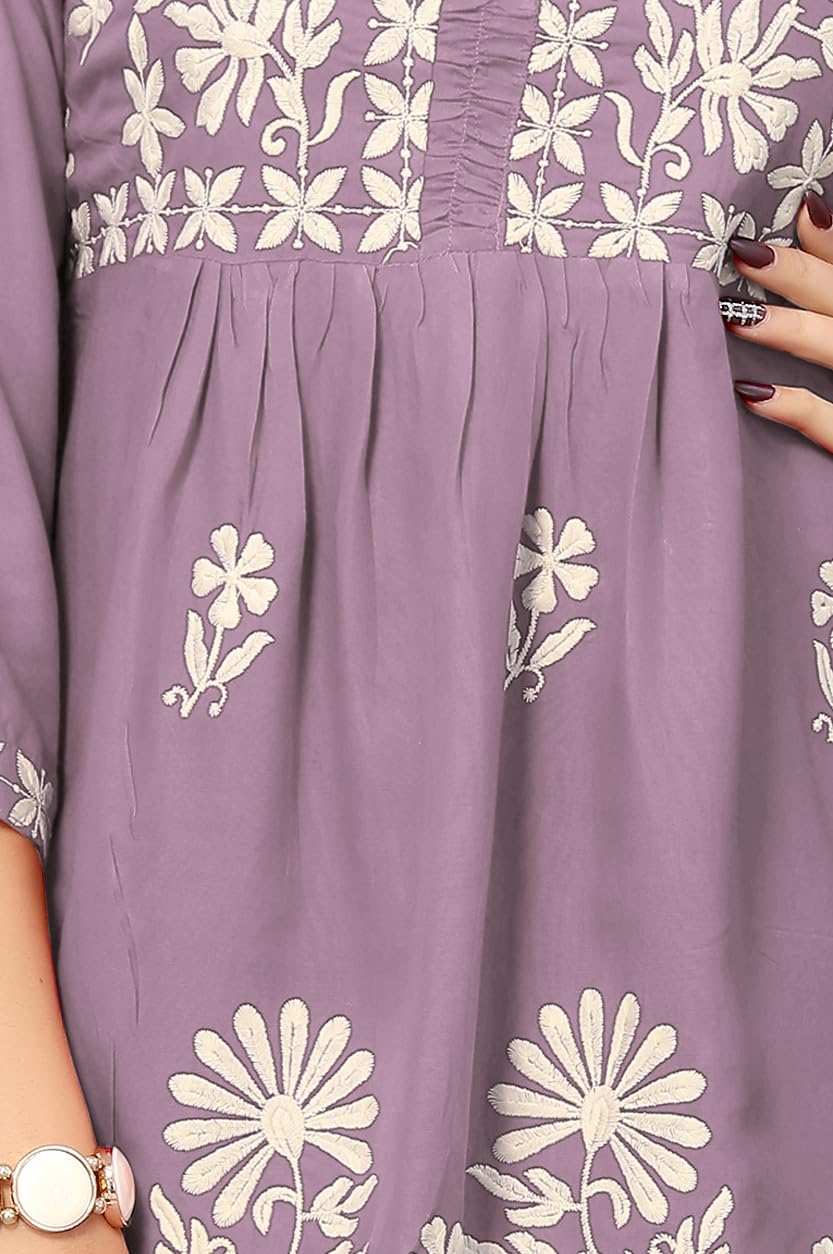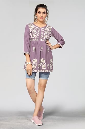 Bee M Pee Designer Short Kurti Tops for Jeans for Women I Chikankari Rayon Cotton Long Regular Fit Kurta Kurti for Women I Stylish Wear Kurti Top for Girls Lavender