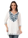 - Exquisite floral embroidery adds a touch of traditional elegance to this stylish kurti top, perfect for ethnic and western fusion wear.