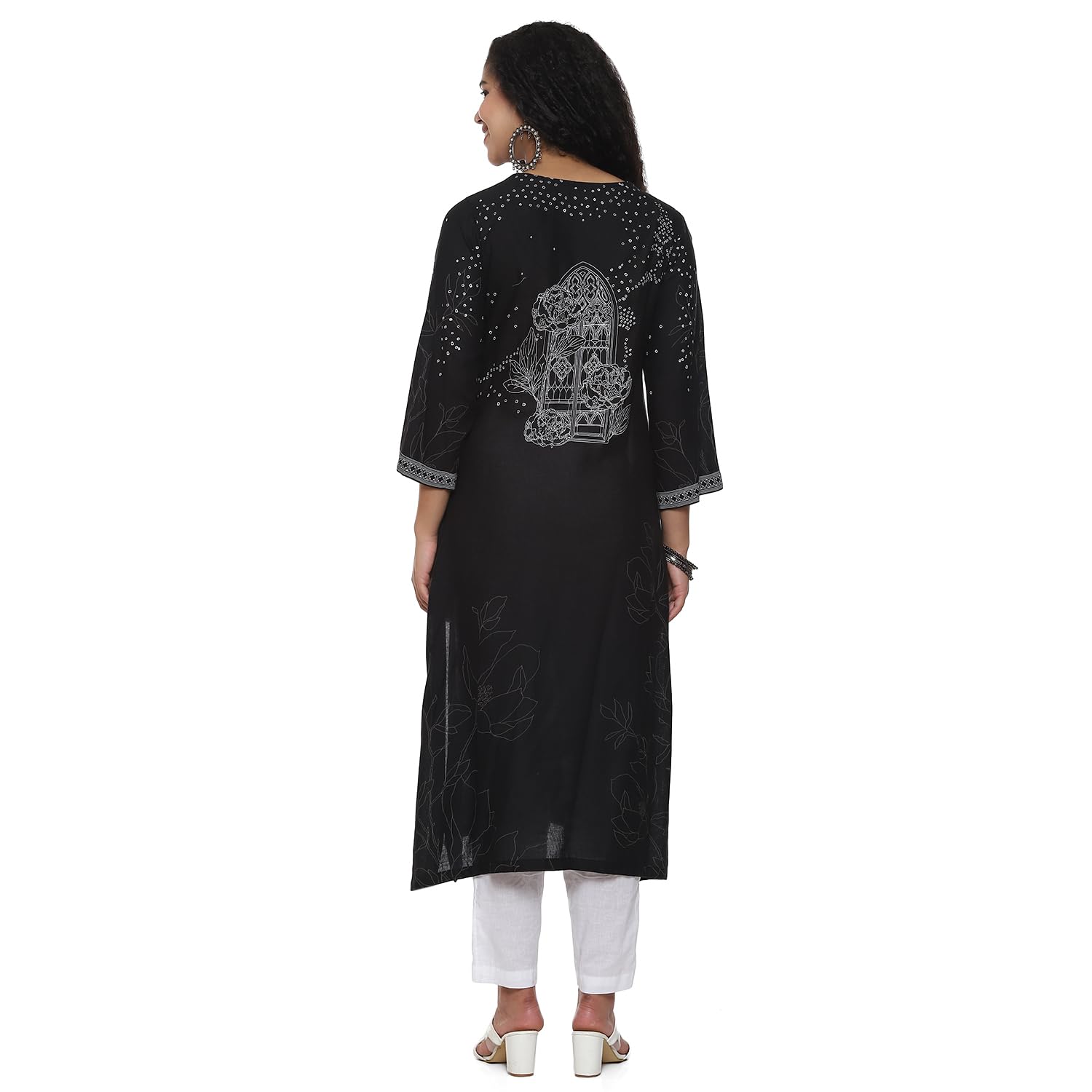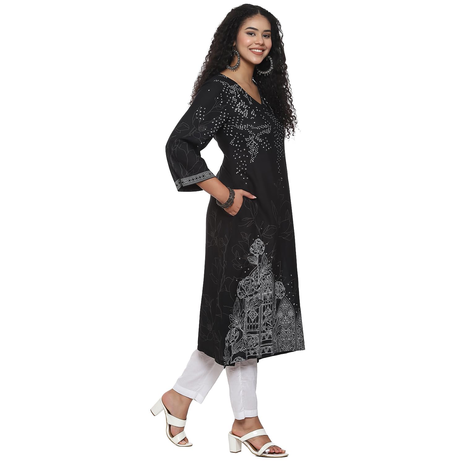 BIBA Women Rayon Printed Straight Fit Mix and Match Tunic Shirt(Monochro2084_Black_34)