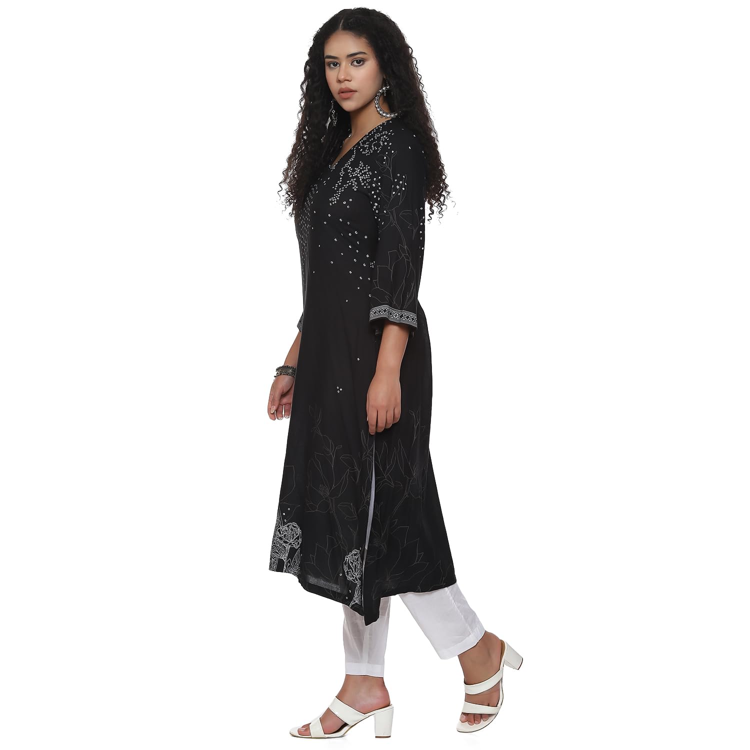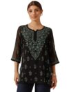 Biba Women Black Rayon Straight Printed Kurta
