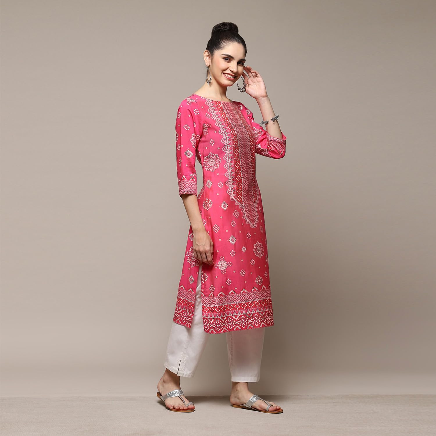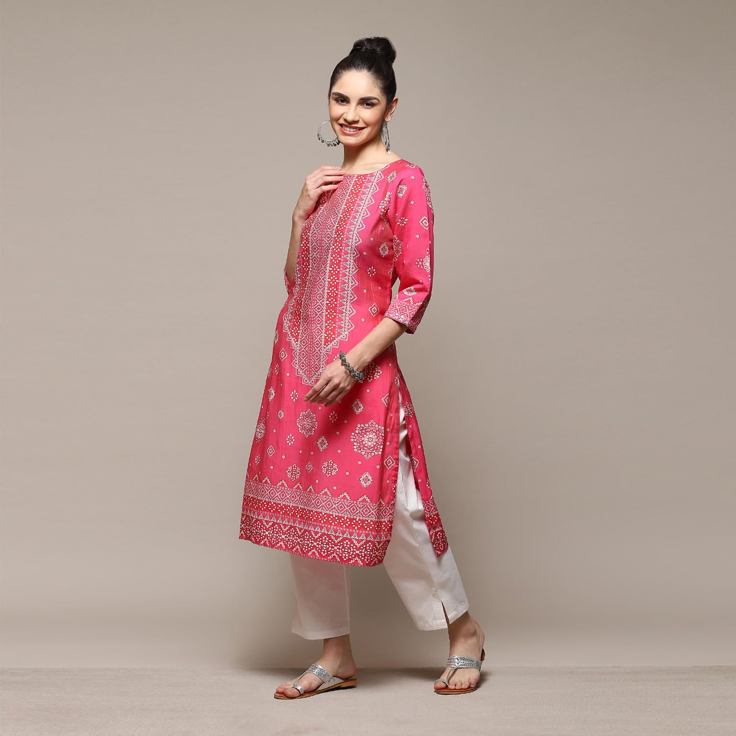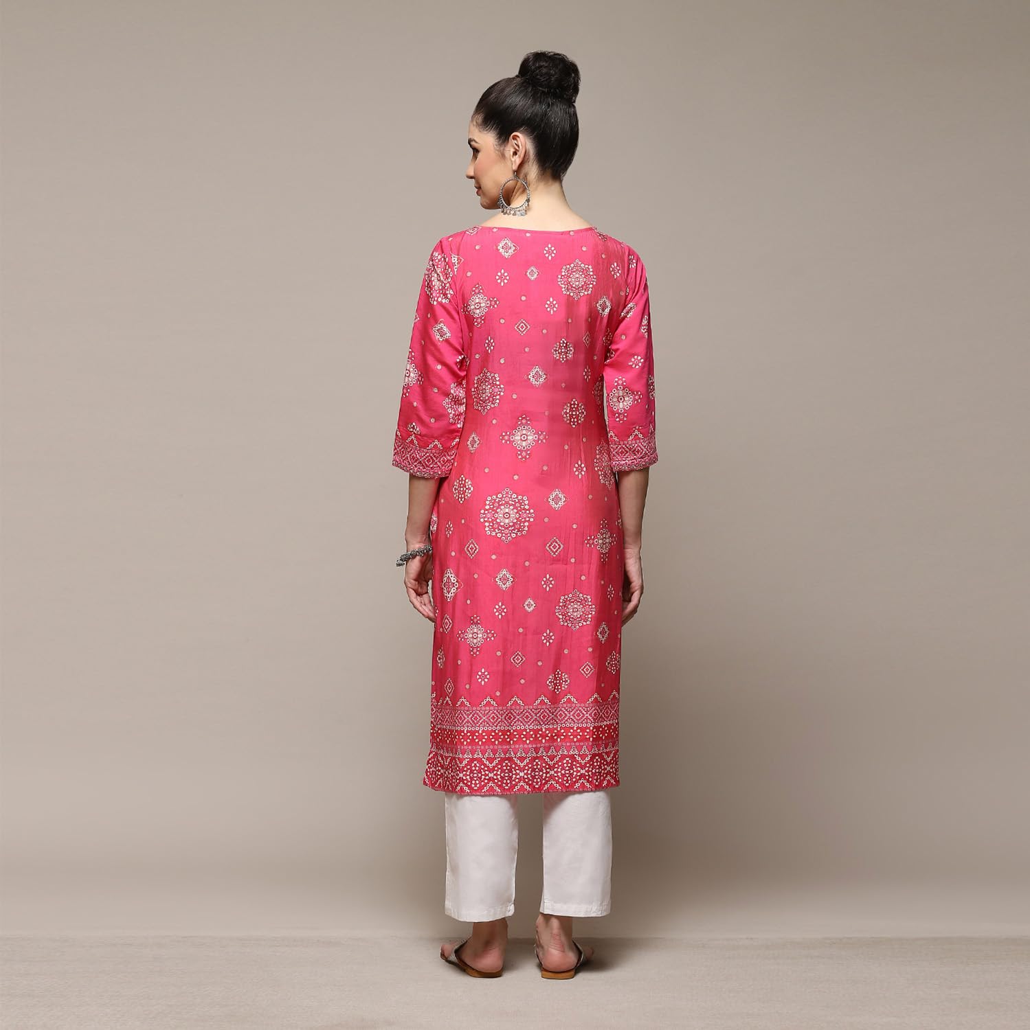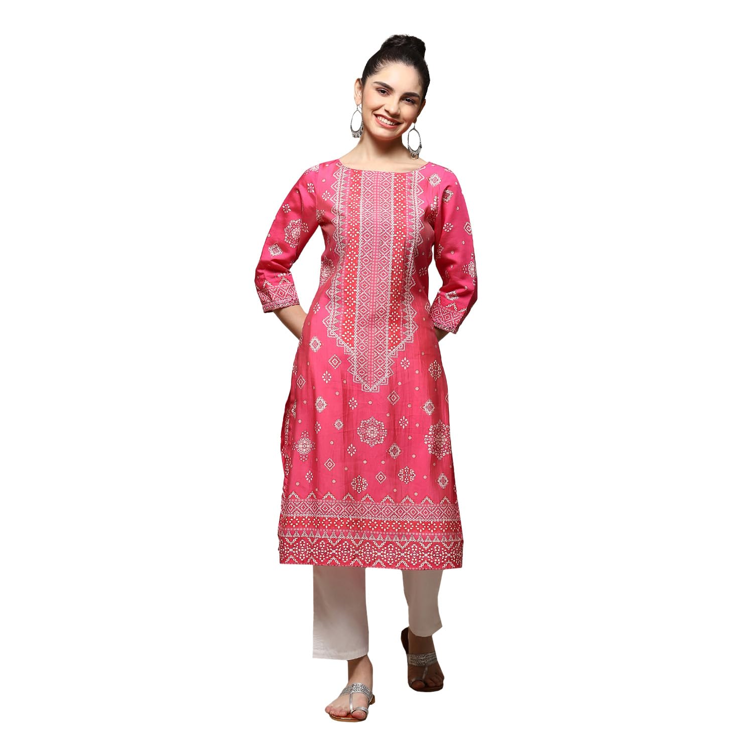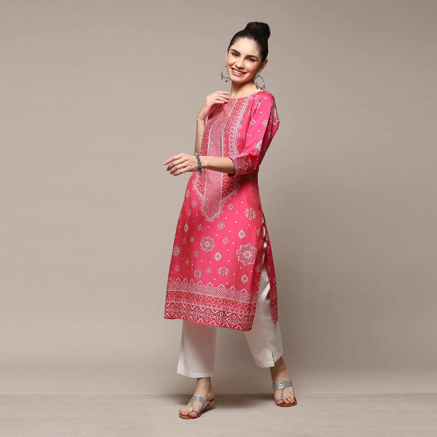 BIBA Women’s Rayon Regular Tunic Shirt (RHNI19562AW23FUS_Pink