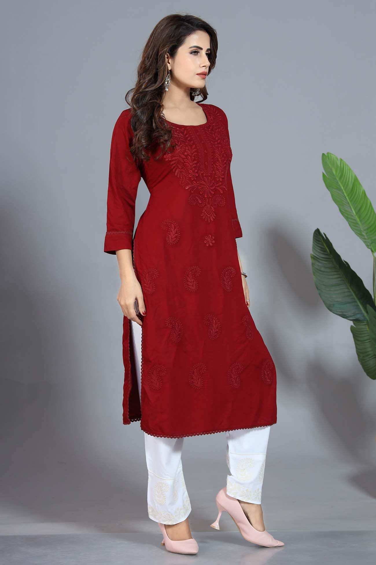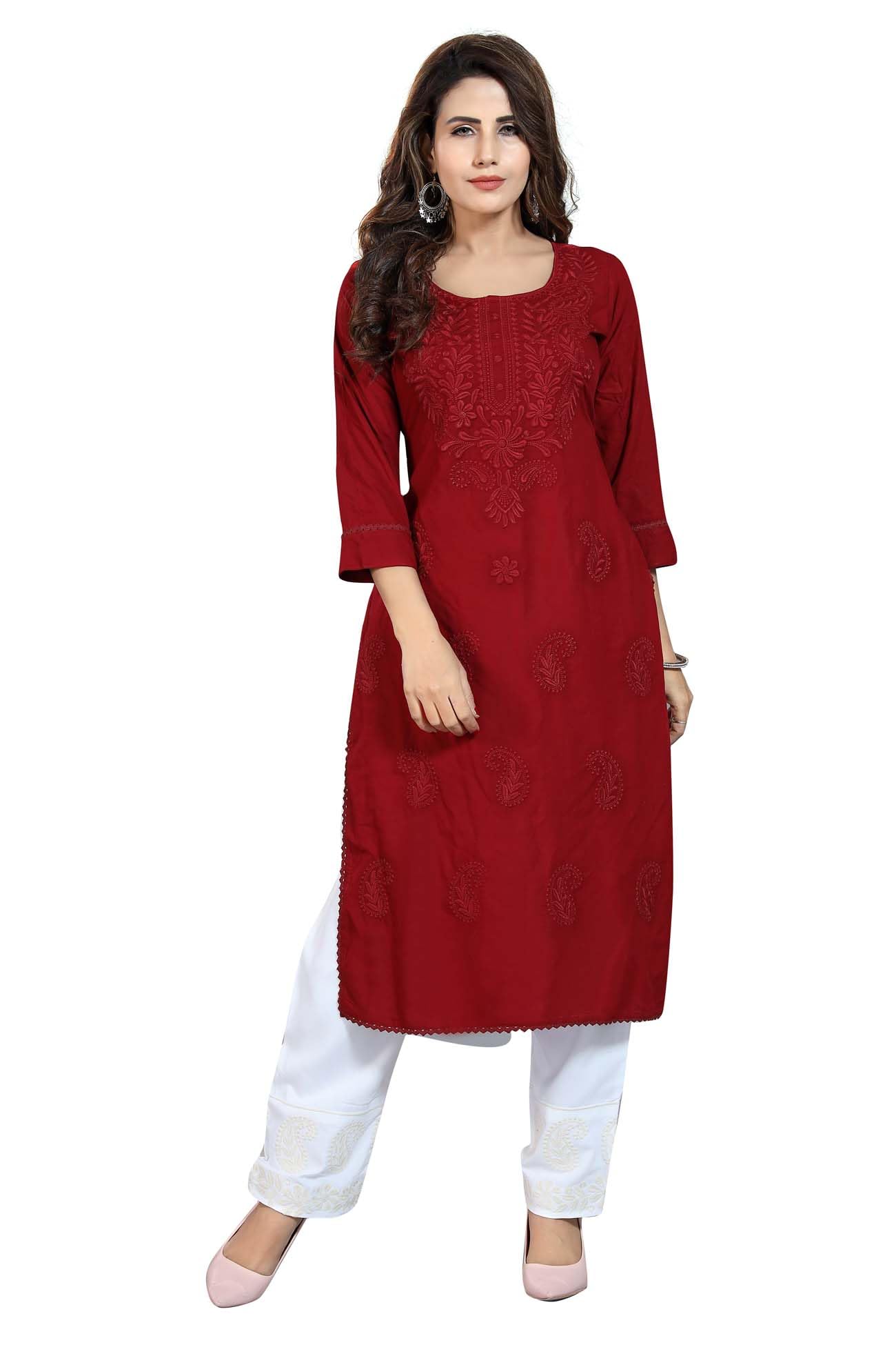 DARIKA Kurtis for Womens in Marron Color, Plain Straight Embroidery for Office wear in All Small & Plus Size M.