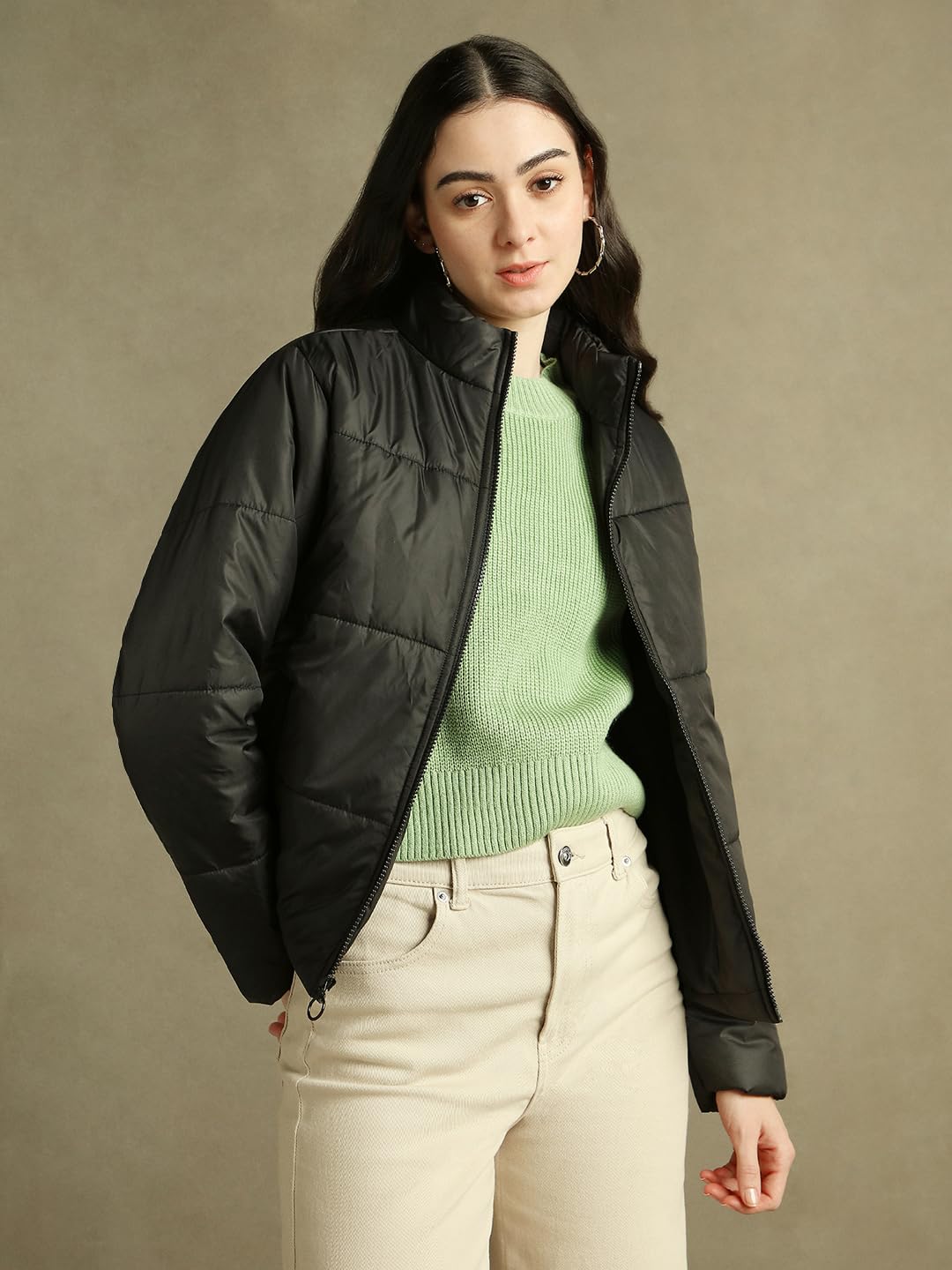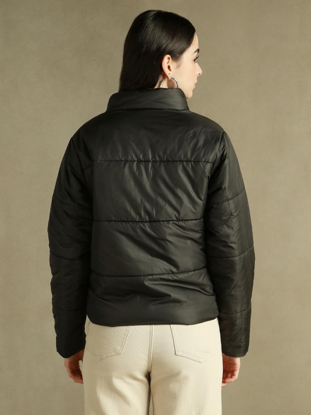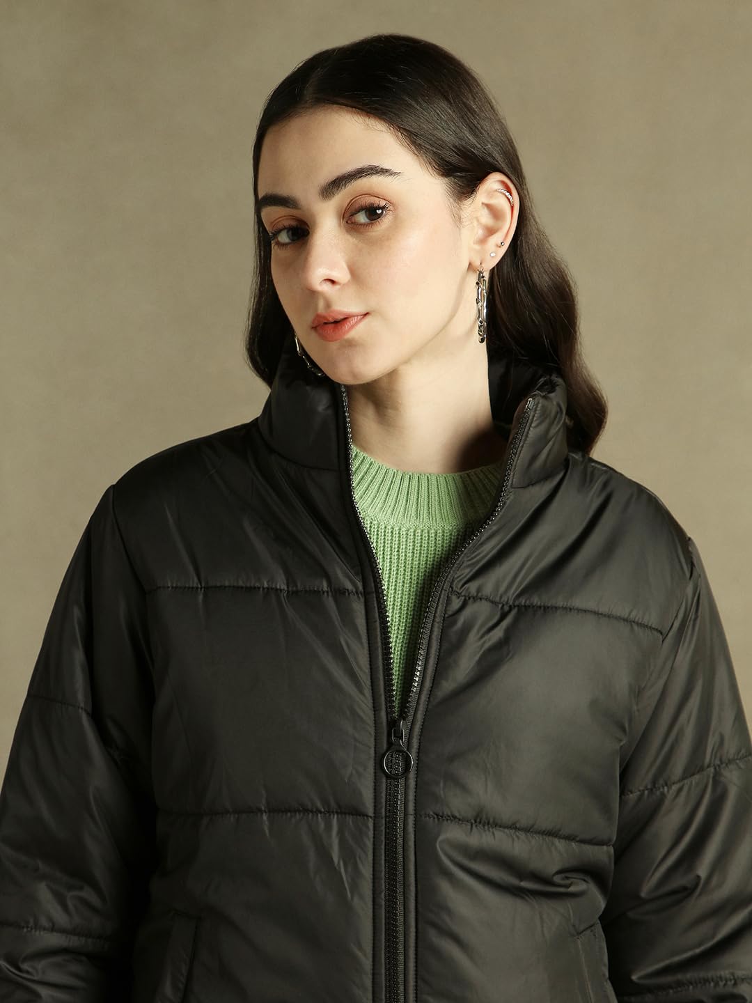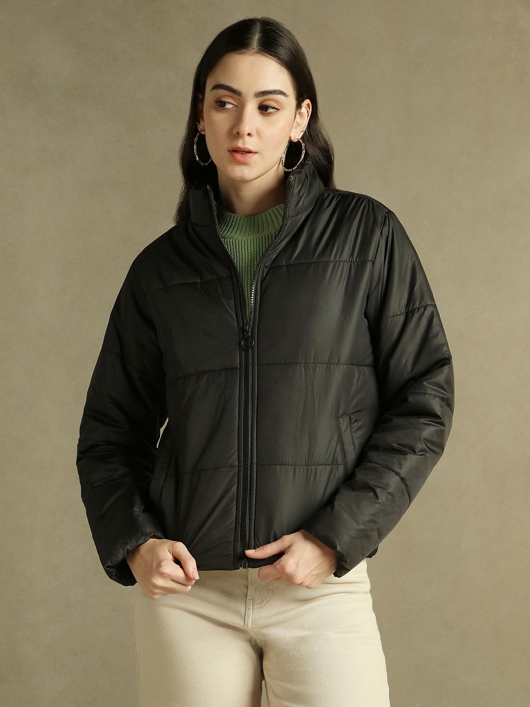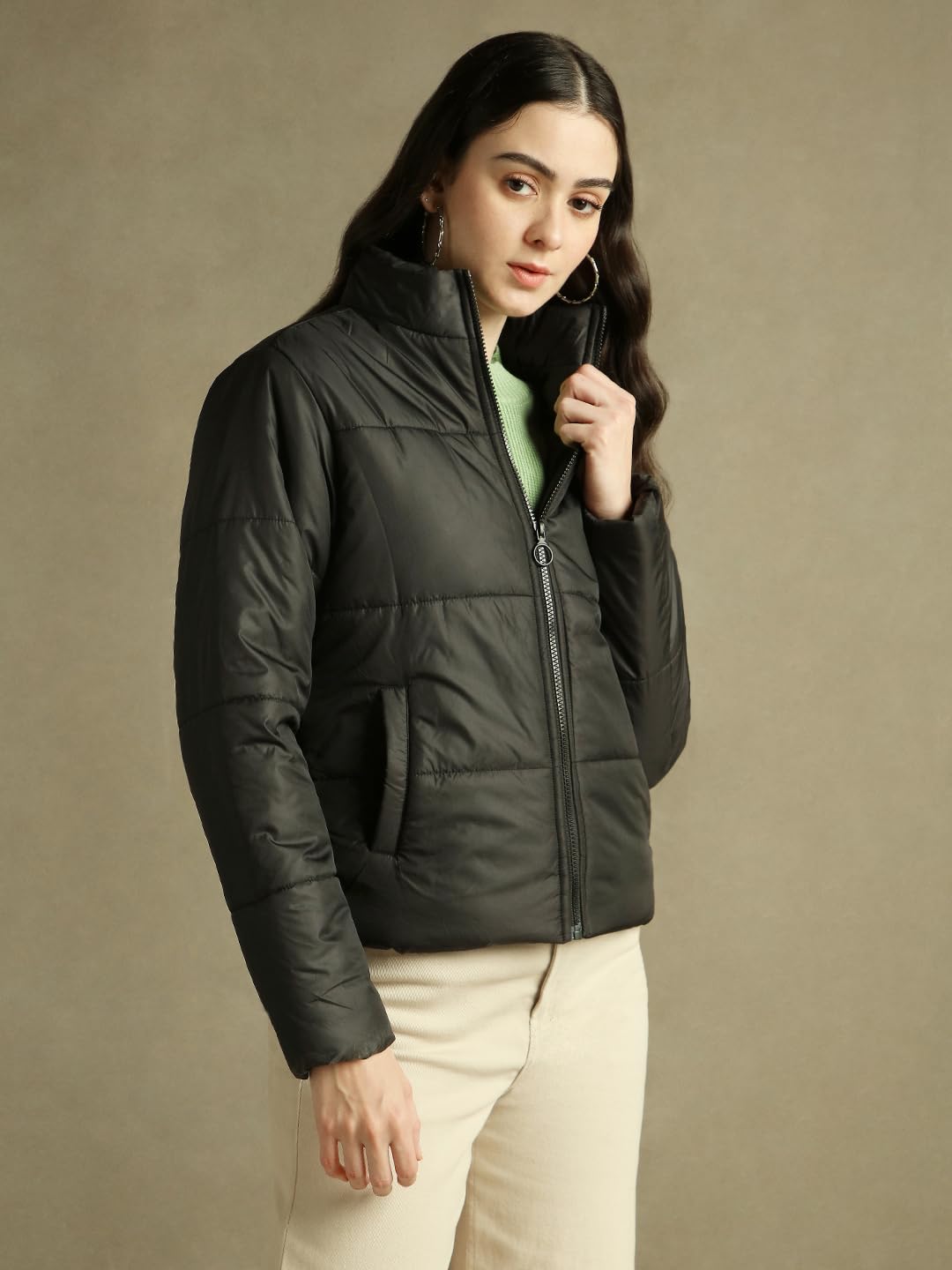 DL Woman Regular Fit Ployseter Solid Full Sleeves Hooded Padded Jackets