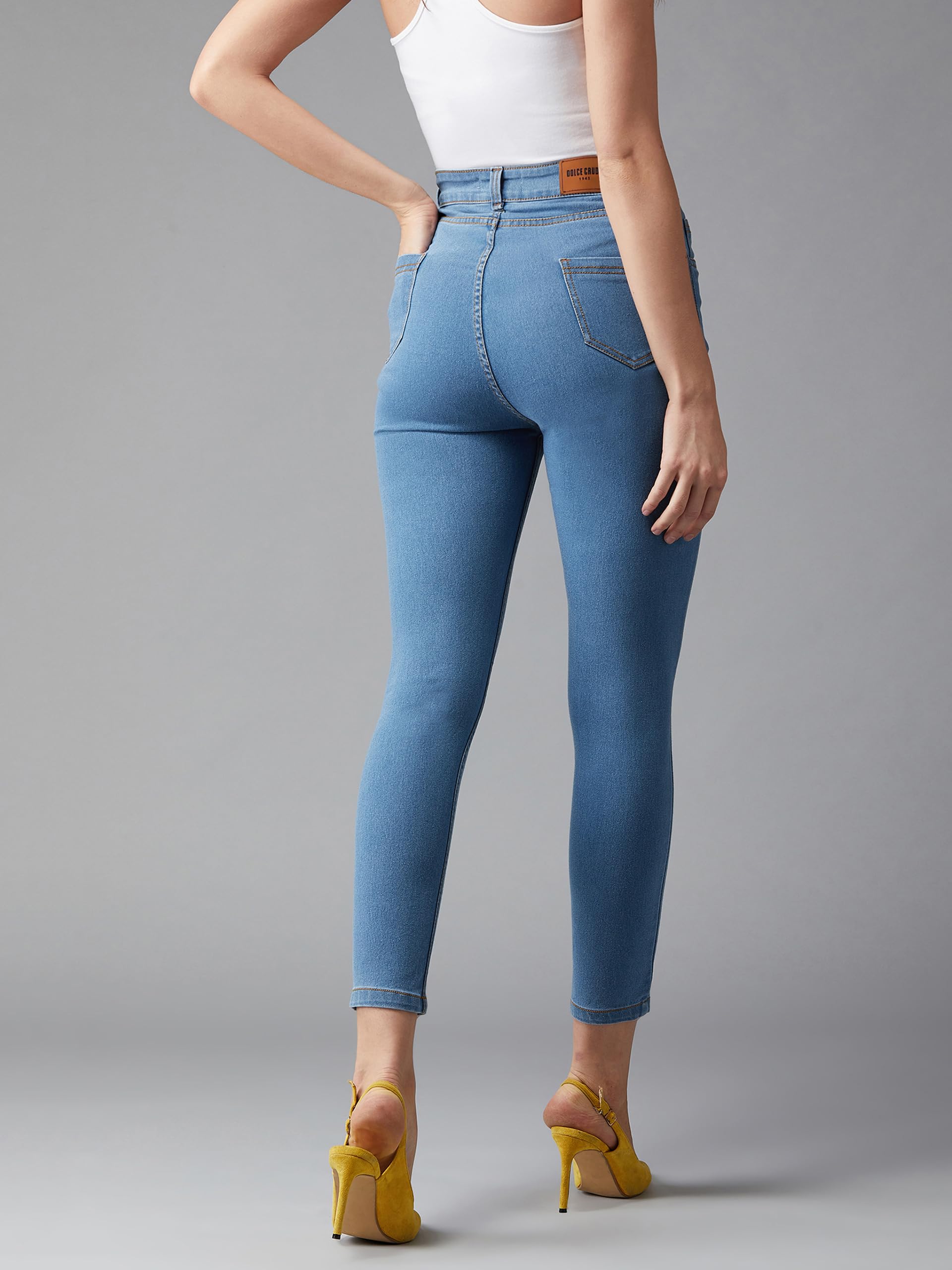 Dolce Crudo Women’s Solid Skinny High Rise Clean Look Cropped Fringe Detailing Solid Stretchable Denim Jeans (DOSS19DEN08-27-115-36, Blue, 36)
