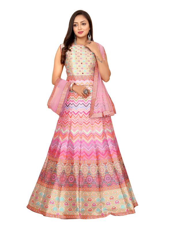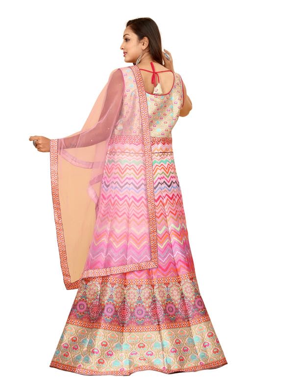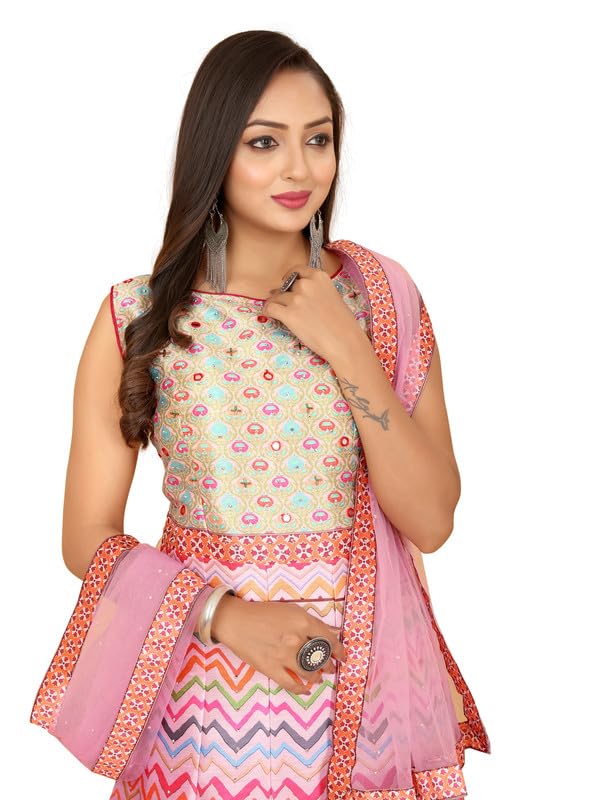 ETHNICTREE Women's Fully Stitched Silk Gown with Net Dupatta for Festive, Paty and Wedding - XL- (D.NO.211) Dark Pink