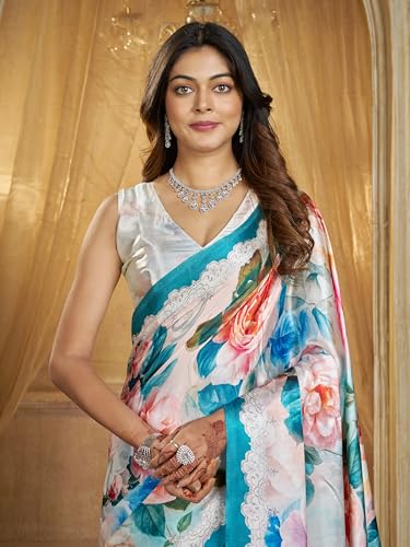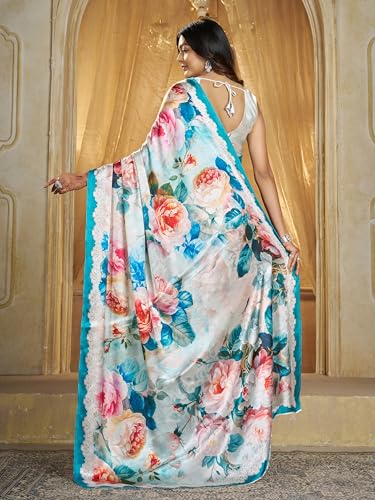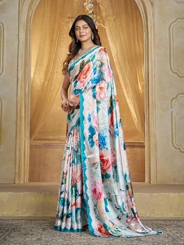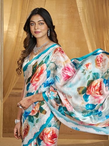Garden Vareli Gajji Silk Floral Printed Saree with Blouse Piece 0PS016 – TEAL