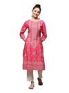 - Style:- Length: 46(inch) | Pattern: Floral Printed | Occasion: Casual | Type: Flared | Sleeve Type: 3/4 Sleeves Regular Sleeves | Color: Pink