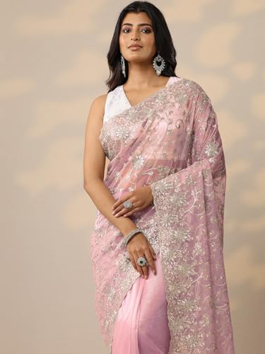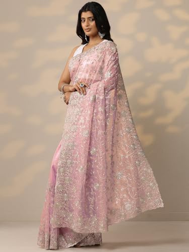 Libas Embroidered Nylon Saree for Women (92448P)