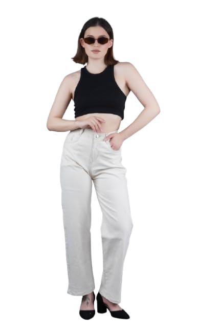 Linaria Women's Relaxed Fit Baggy Denim Jeans, Beige, Casual Style (in, Numeric, 34, Regular, Beige)