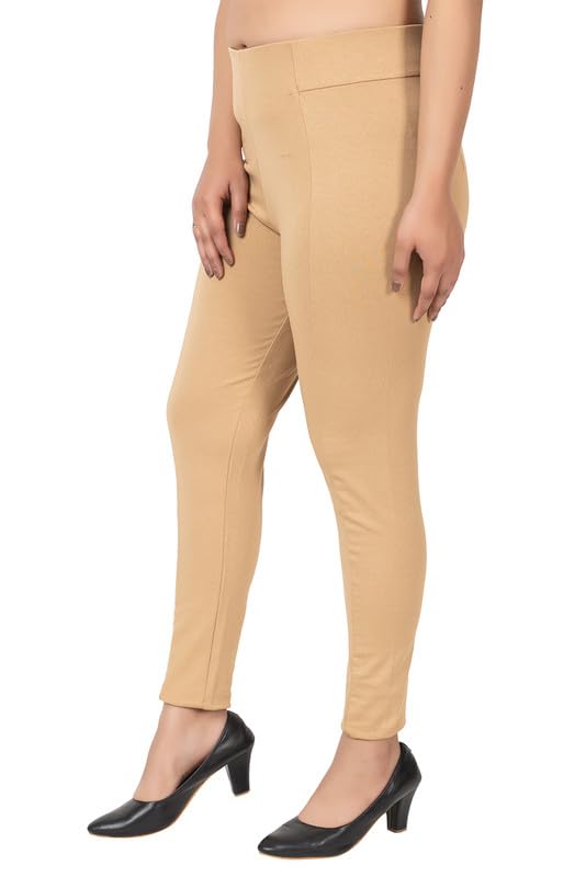 Mlada Slim Fit Jeggings with Elastic Waist Band for Women Office Work Formal Wear Trousers Stretch Cotton Knit High Waist Skinny Fit Jeggings Lycra Pants Travel Comfort Jeggings – Beige, 2XL