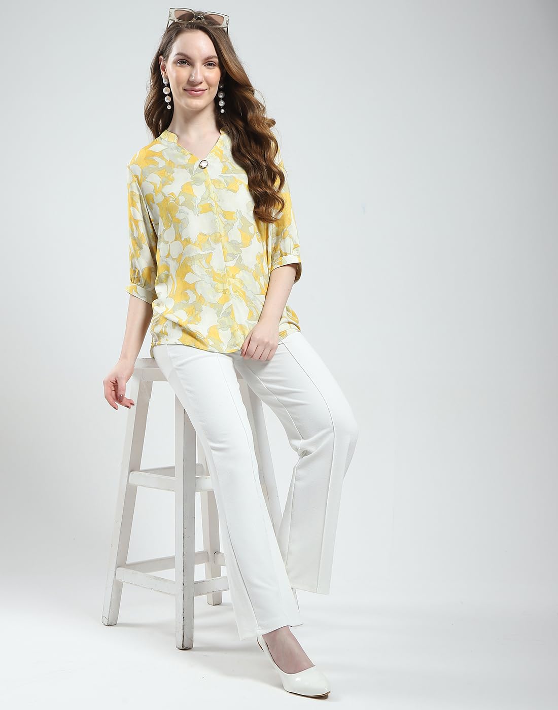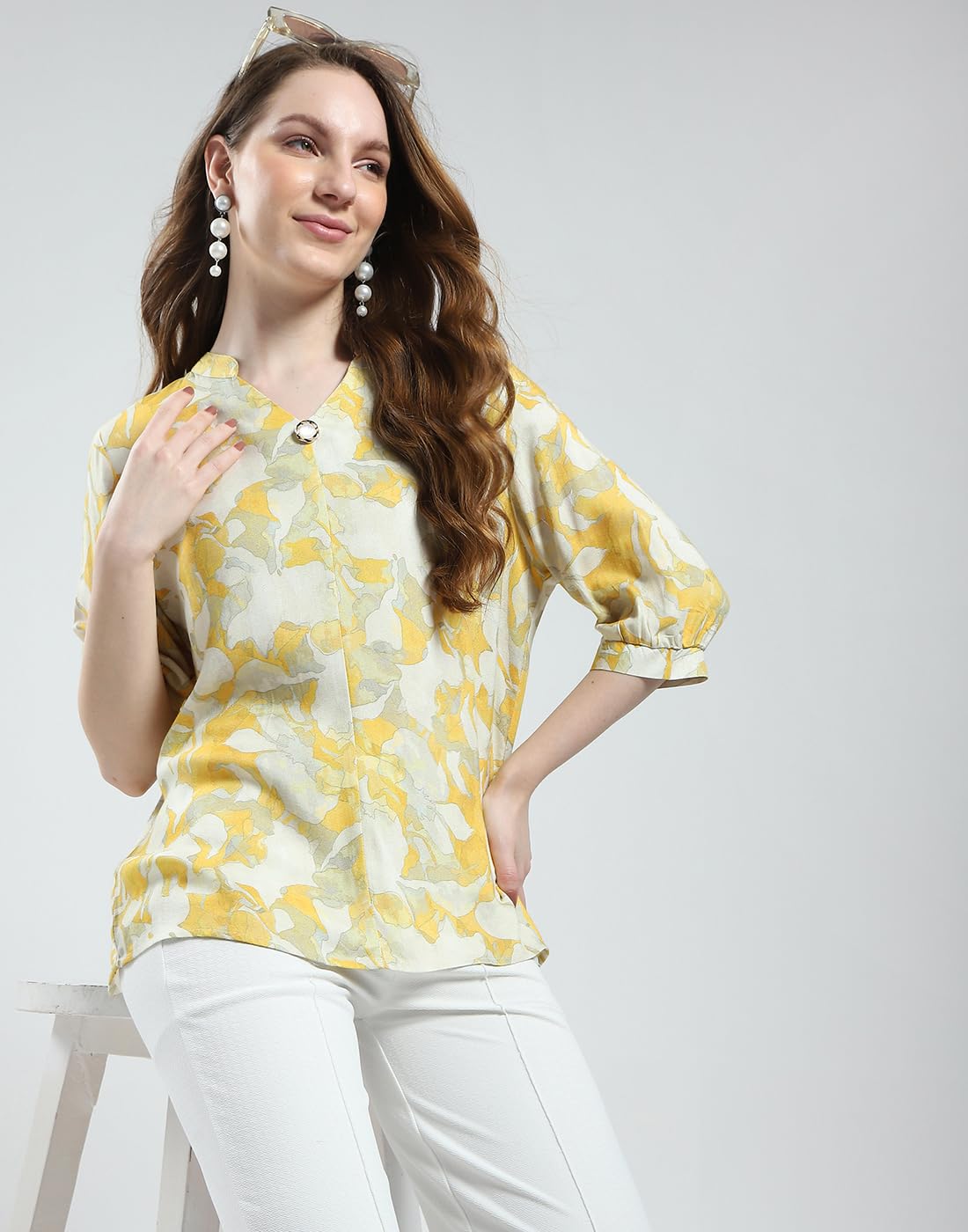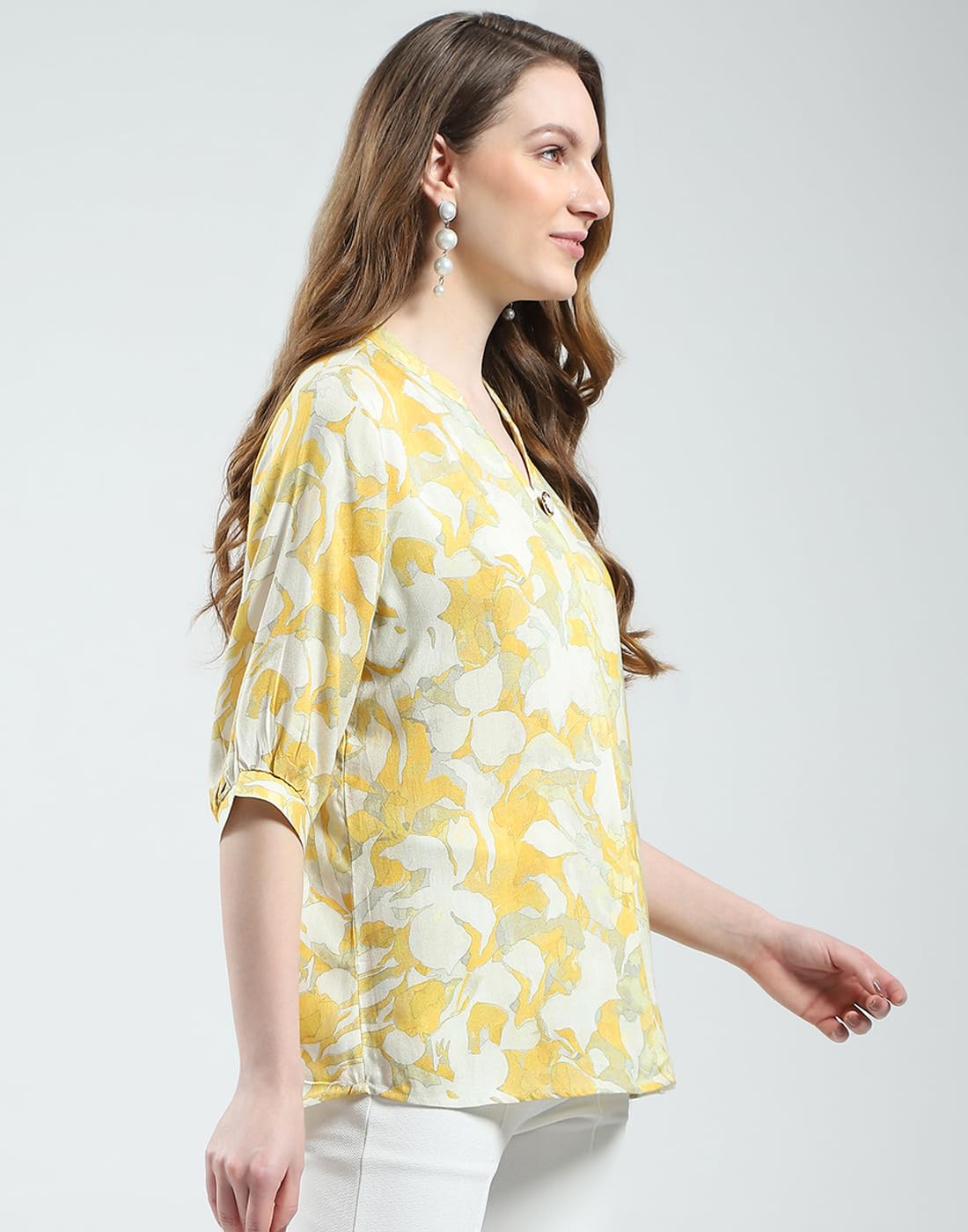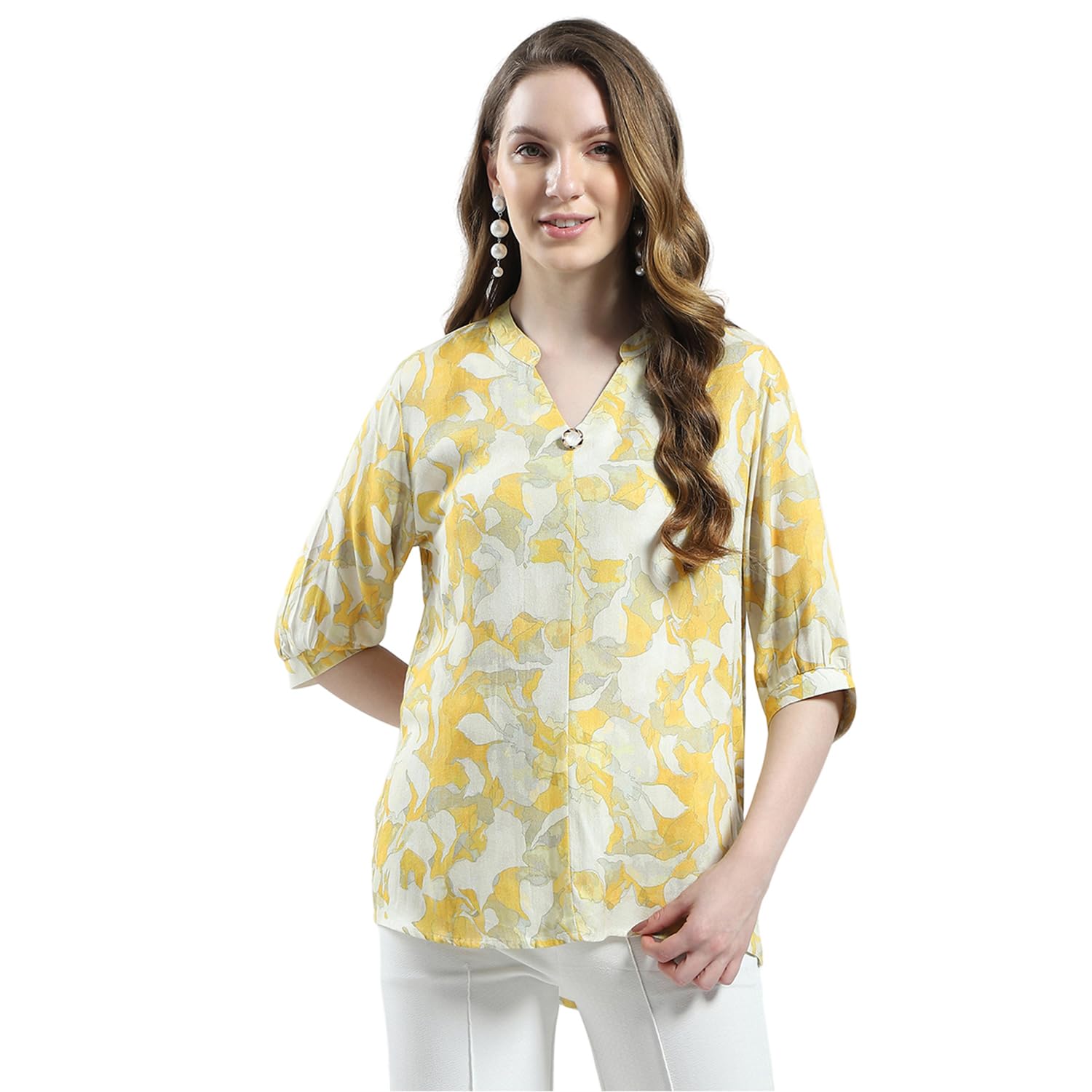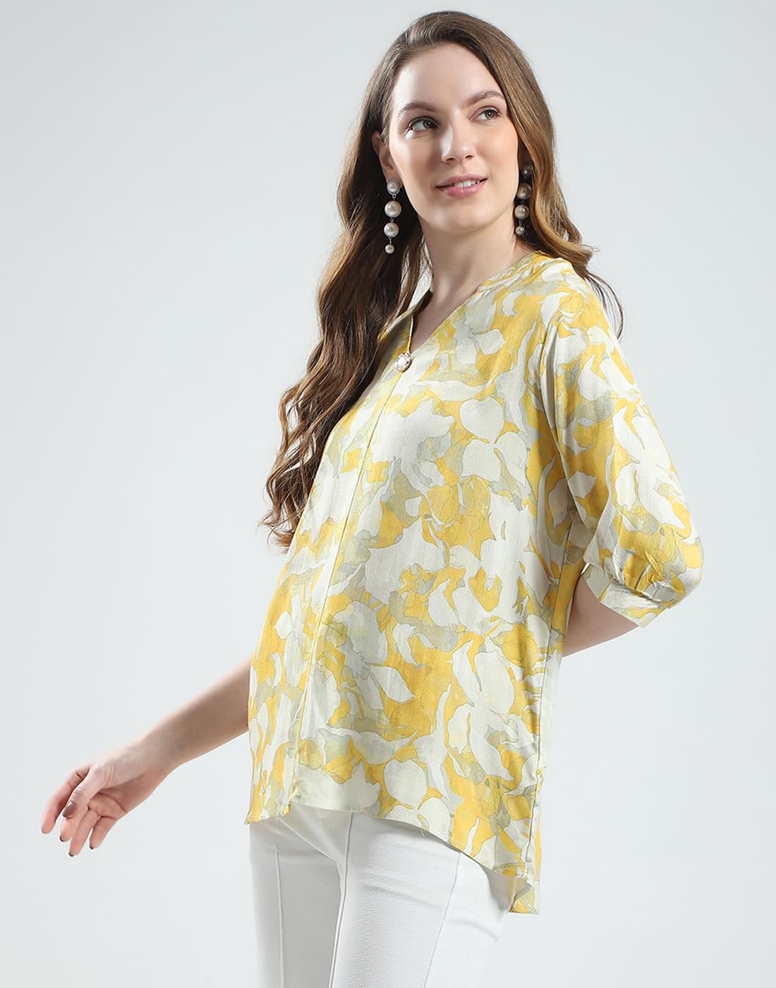 Monte Carlo Women's Printed V Neck Top | Half Sleeve Casual Wear | Stylish & Comfortable | Everyday Top Wear for Women Yellow M (Pack of 1)
