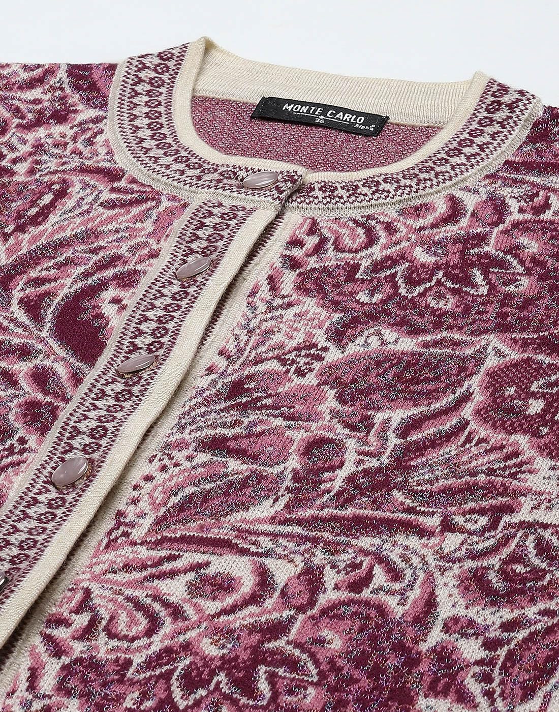 Monte Carlo Women’s Regular Fit Cardigan | Self Design Knit | Round Neck | Full Sleeves | Button Closure | Fashionable Stylish Warm Winter Cardigan for Women (Pack of 1)
