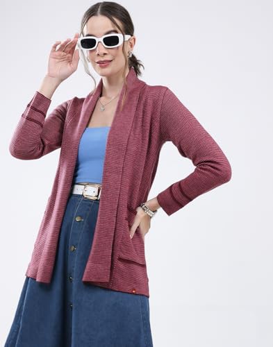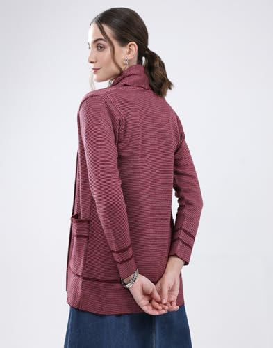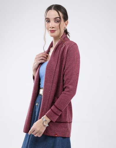Monte Carlo Women's Regular Fit Cardigan | Self Design Pattern | Front Open with Full Sleeve Collar Neck Winter Cardigan for Womens Maroon L (Pack Of 1)