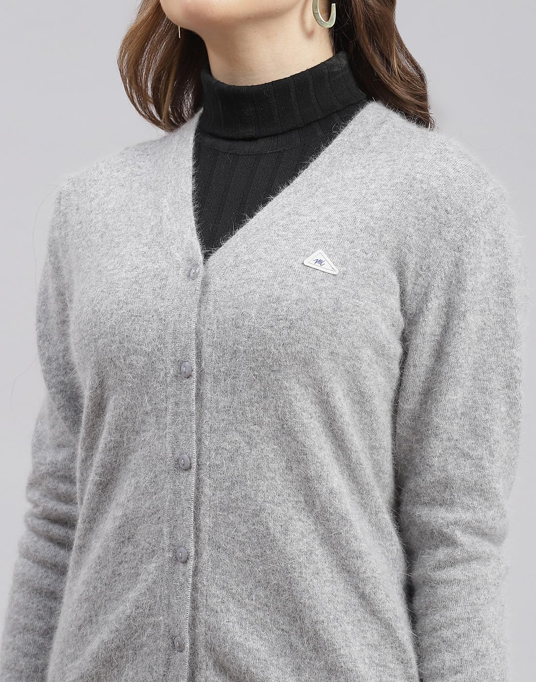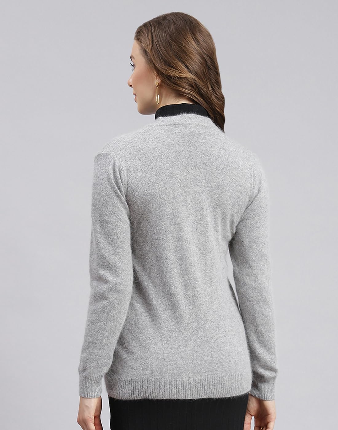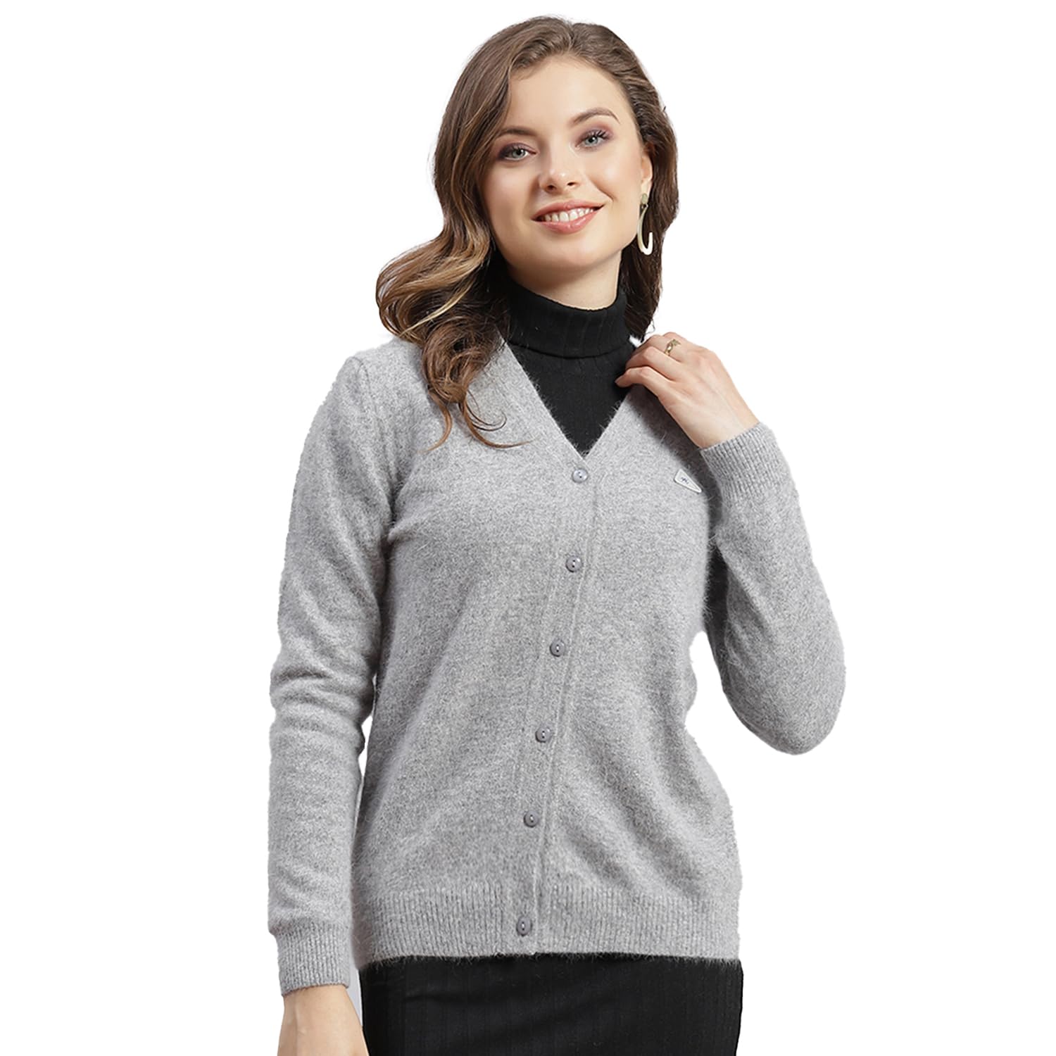 Monte Carlo Womens Solid Grey V Neck Full Sleeve Cardigan (1240739VN-141-36)