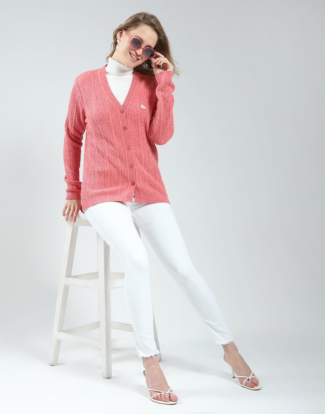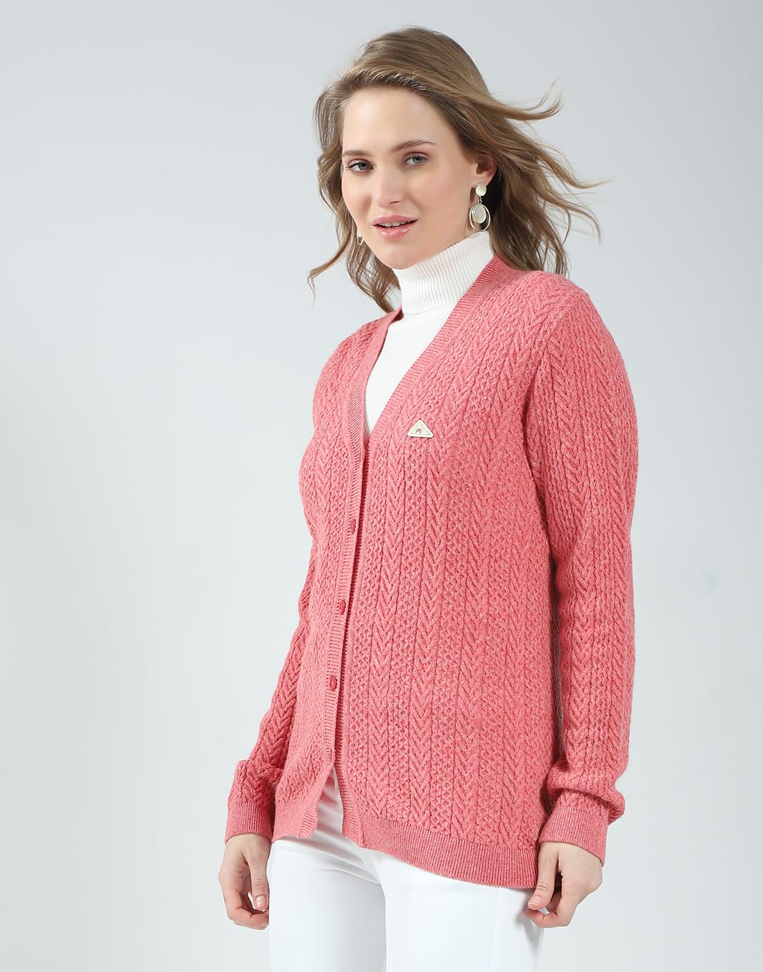 Monte Carlo Women's Wool V-Neck Cardigan (1243564VN_Pink