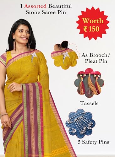 - WHAT YOU GET — 1 Cotton Saree with Running Blouse, 1 Assorted Saree Pin, 5 Safety Pins
