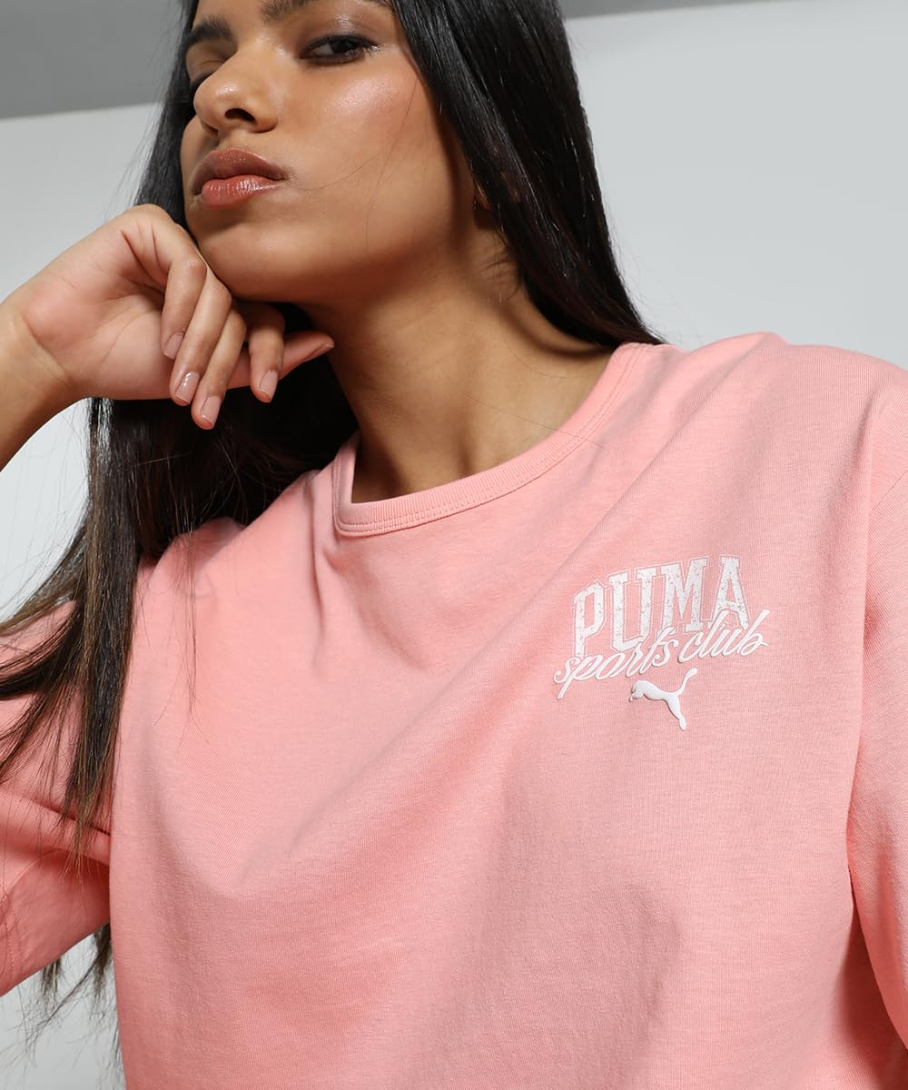 PRODUCT STORY : Embrace effortless cool with this relaxed crop tee. Featuring a bold graphic rubber print, it’s perfect for making a statement while keeping it casual. Pair with your favorite high-waisted jeans for a look that’s pure PUMA. FEATURES & BENEFITS : Made with at least 20% recycled cotton DETAILS : Relaxed fitSingle jersey fabricCropped lengthCrew neckShort sleevesPUMA branding details