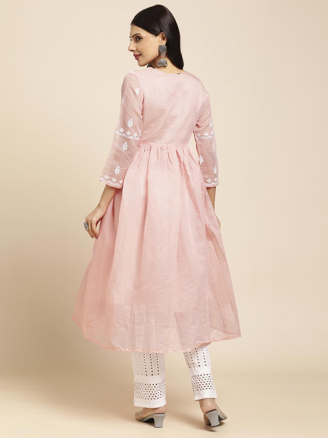 RATAN Women’s Muga Cotton Flared Lucknowi Chikankari Ethnic Wear Regular Fit Kurta (TPD-4481-3X-Large_Peach)