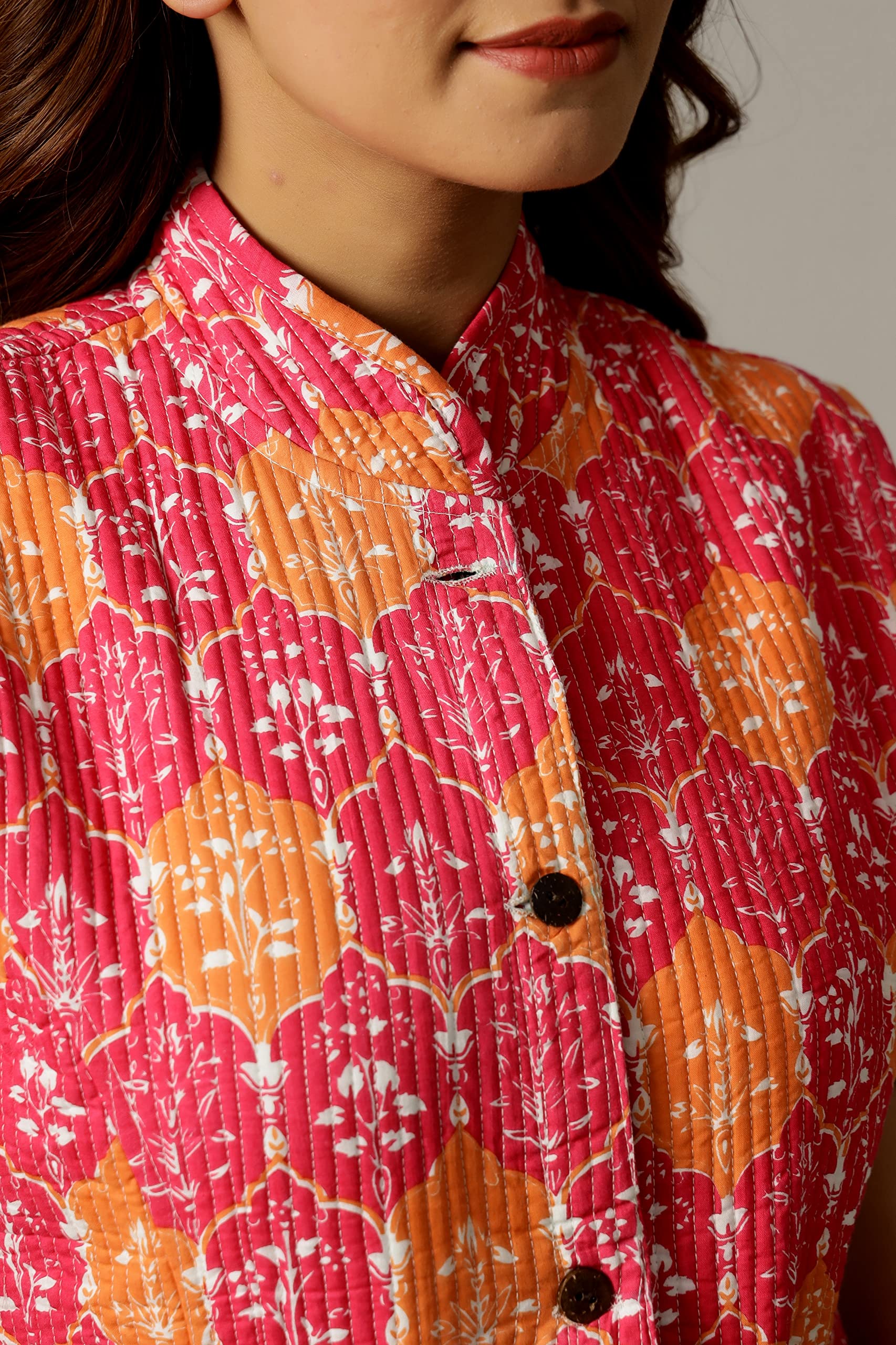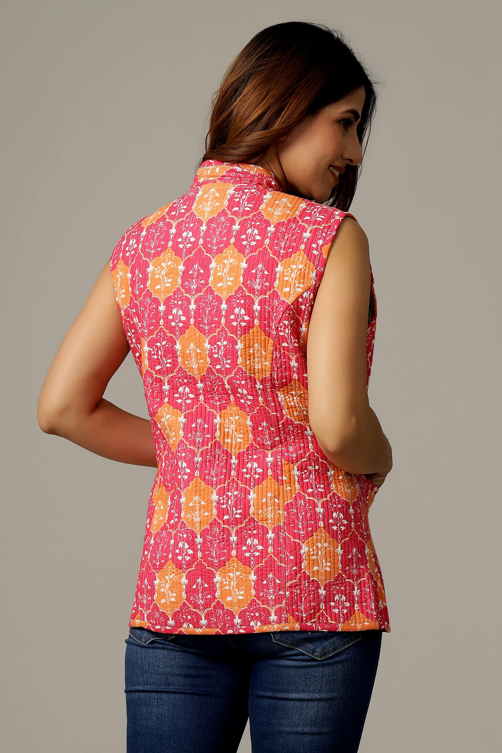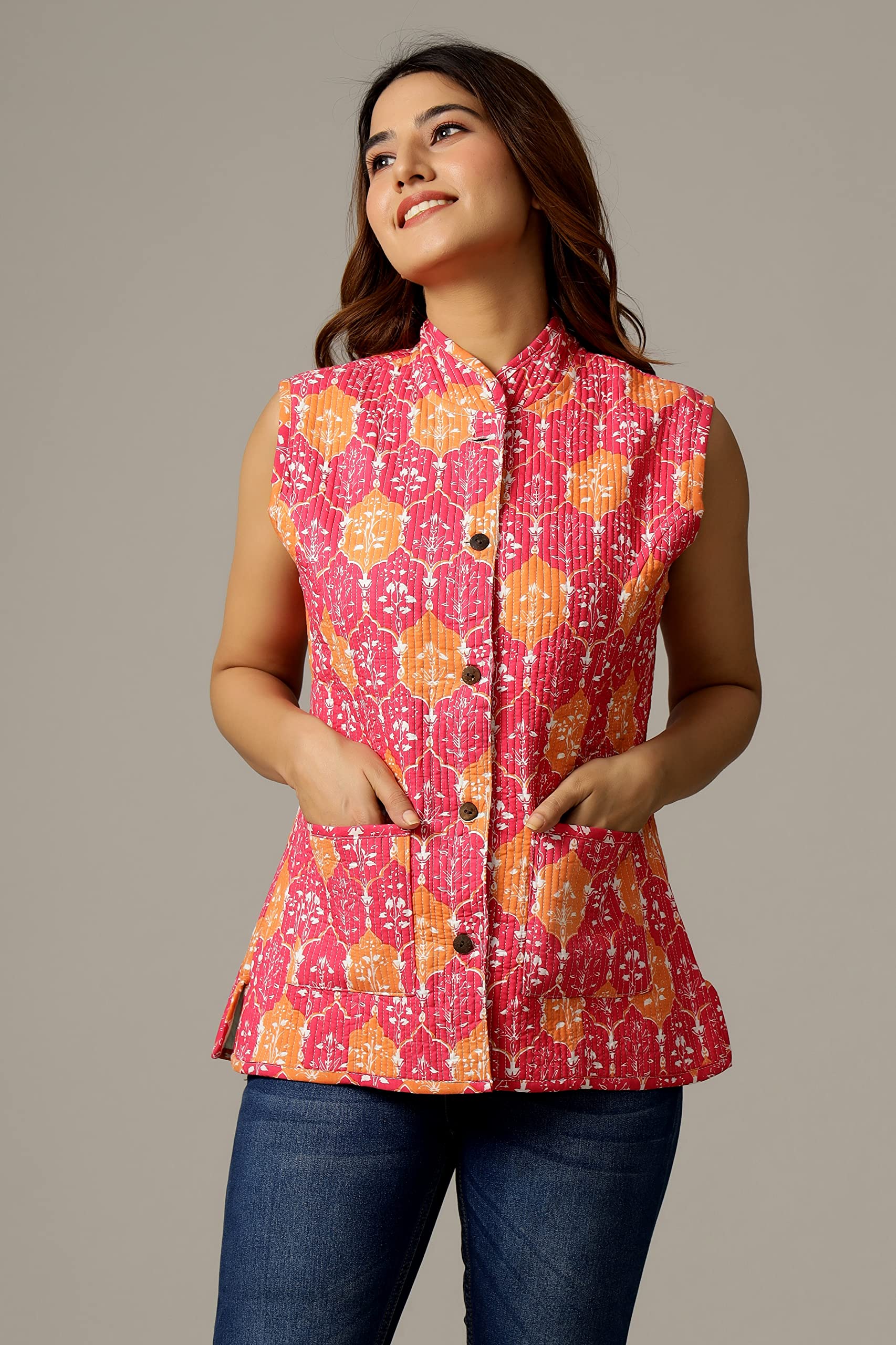 Ravaiyaa – Attitude is everything Women’s Floral Printed Reversible Quilted Jacket Coat Blazer Jacket Sleeve Less Waistcoat (Pink Floral, Medium)