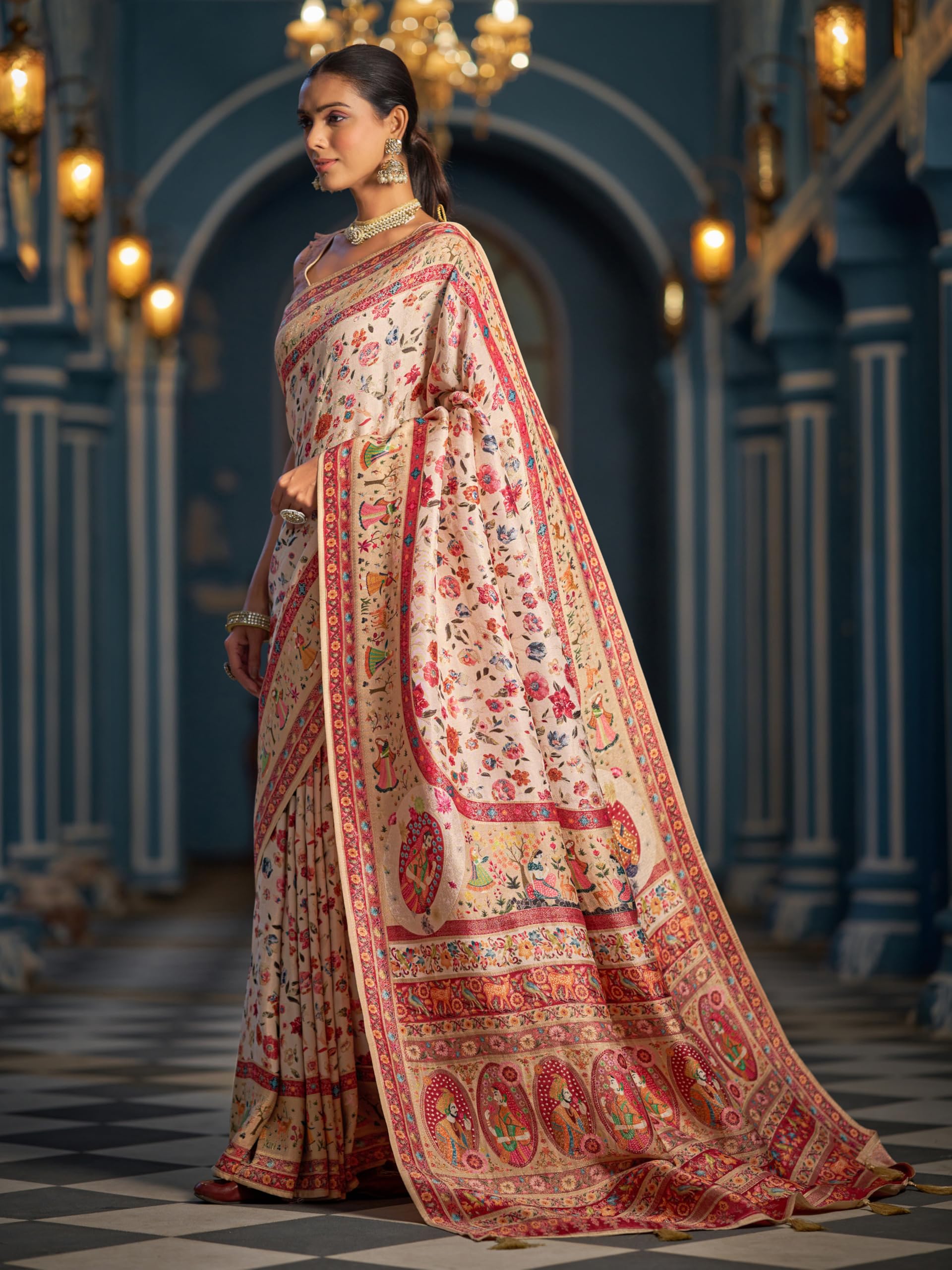 SWORNOF Women Viscose WORNOF Pashmina Saree | Silk with Rich Pallu Design | With Blouse Piece | Soft and Skin Friendly