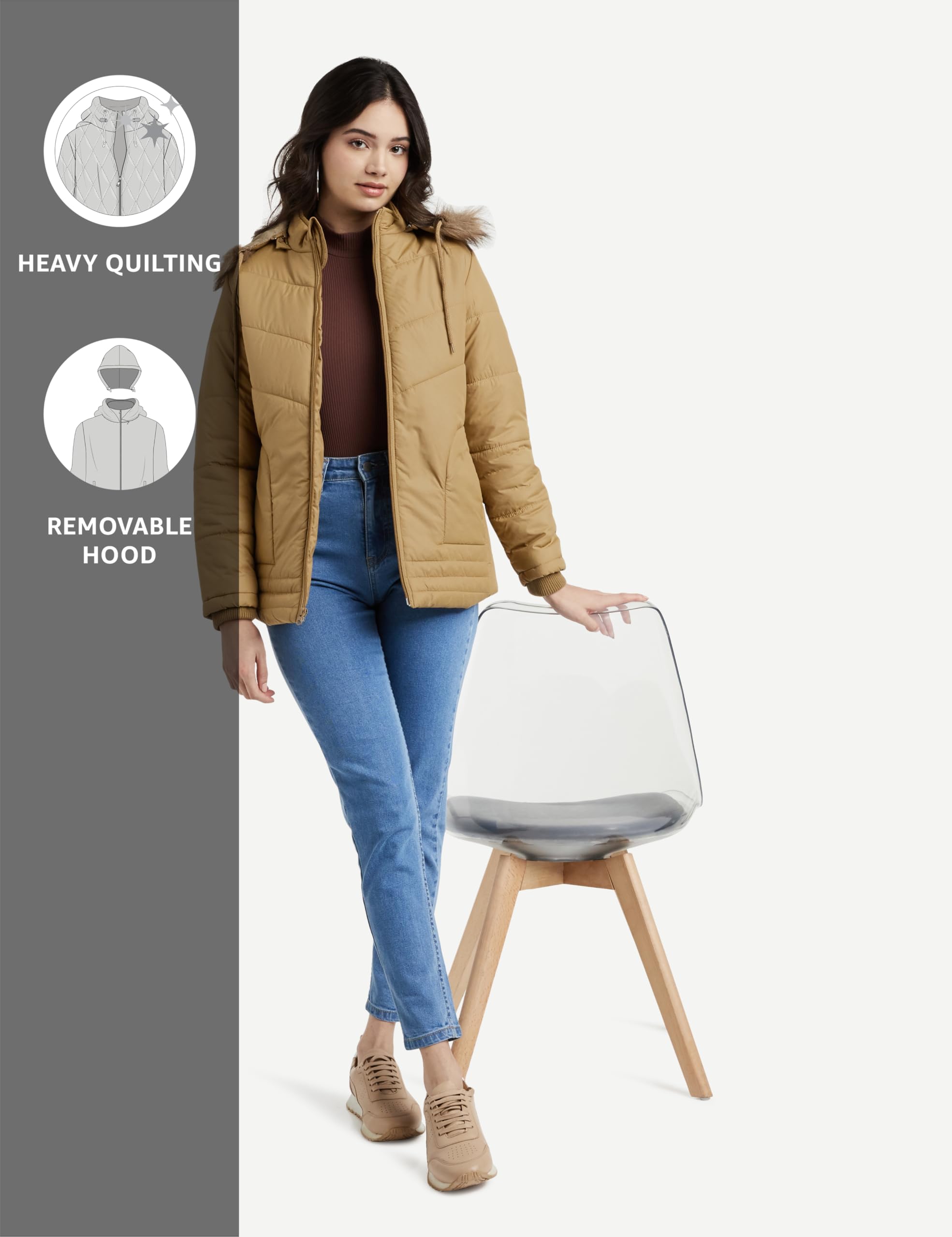 - The jacket is offered in attractive colors with functional features, easy to layer over warm clothing during the cold weather – best paired with denim and winter boots