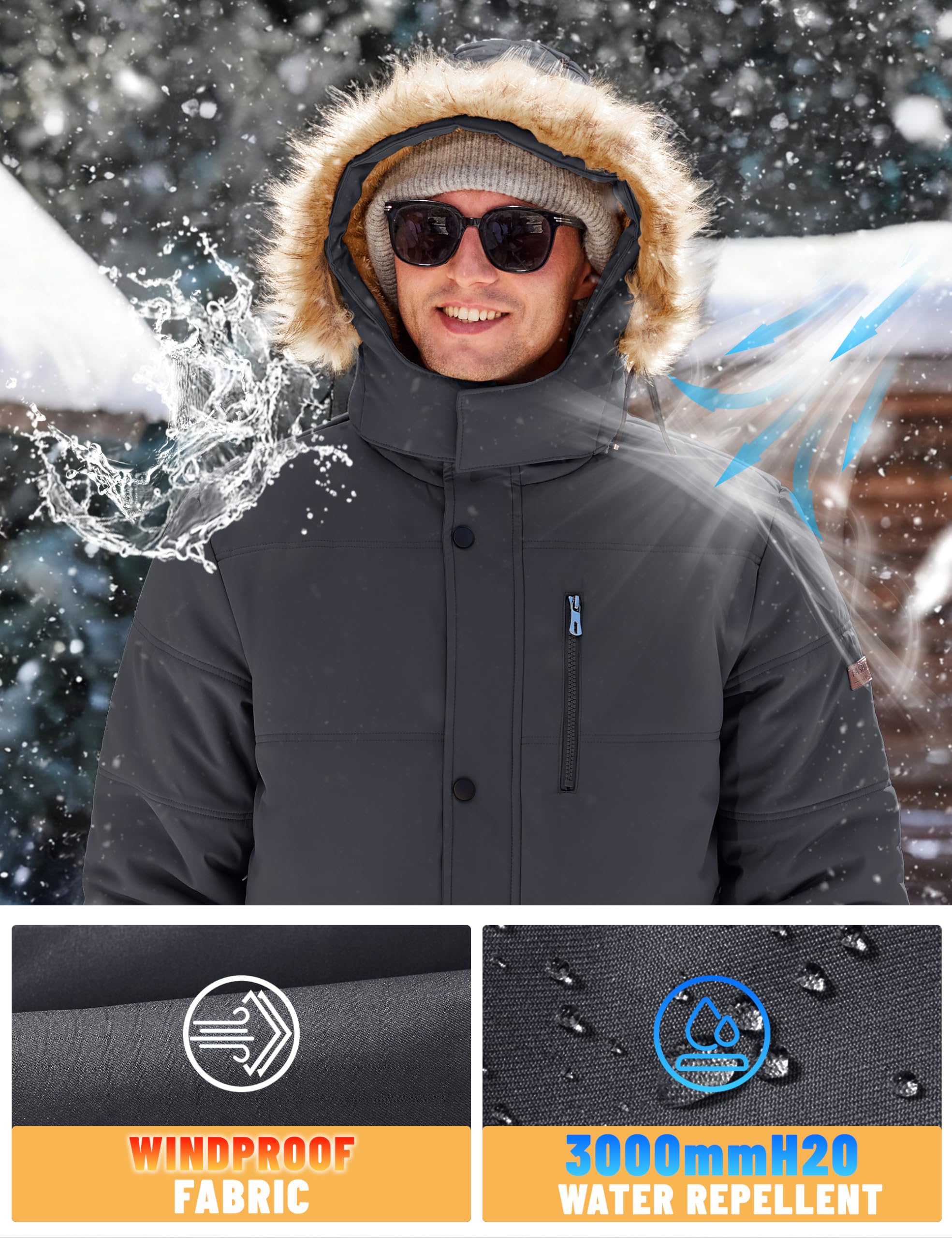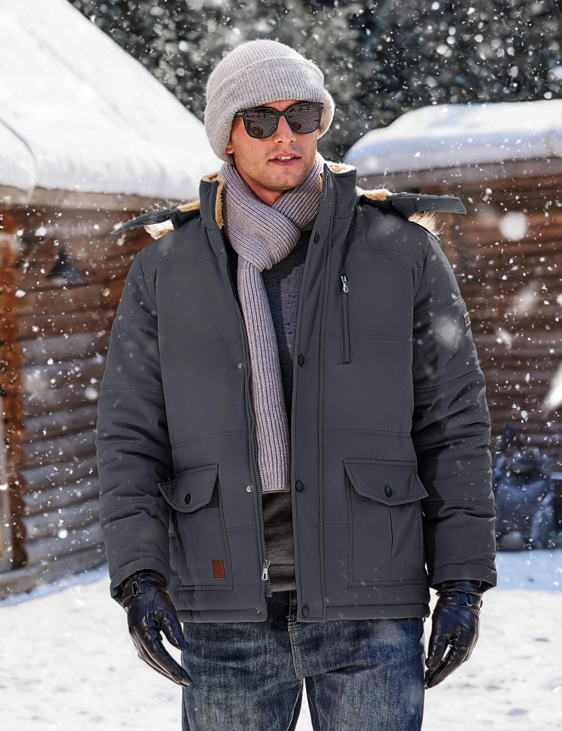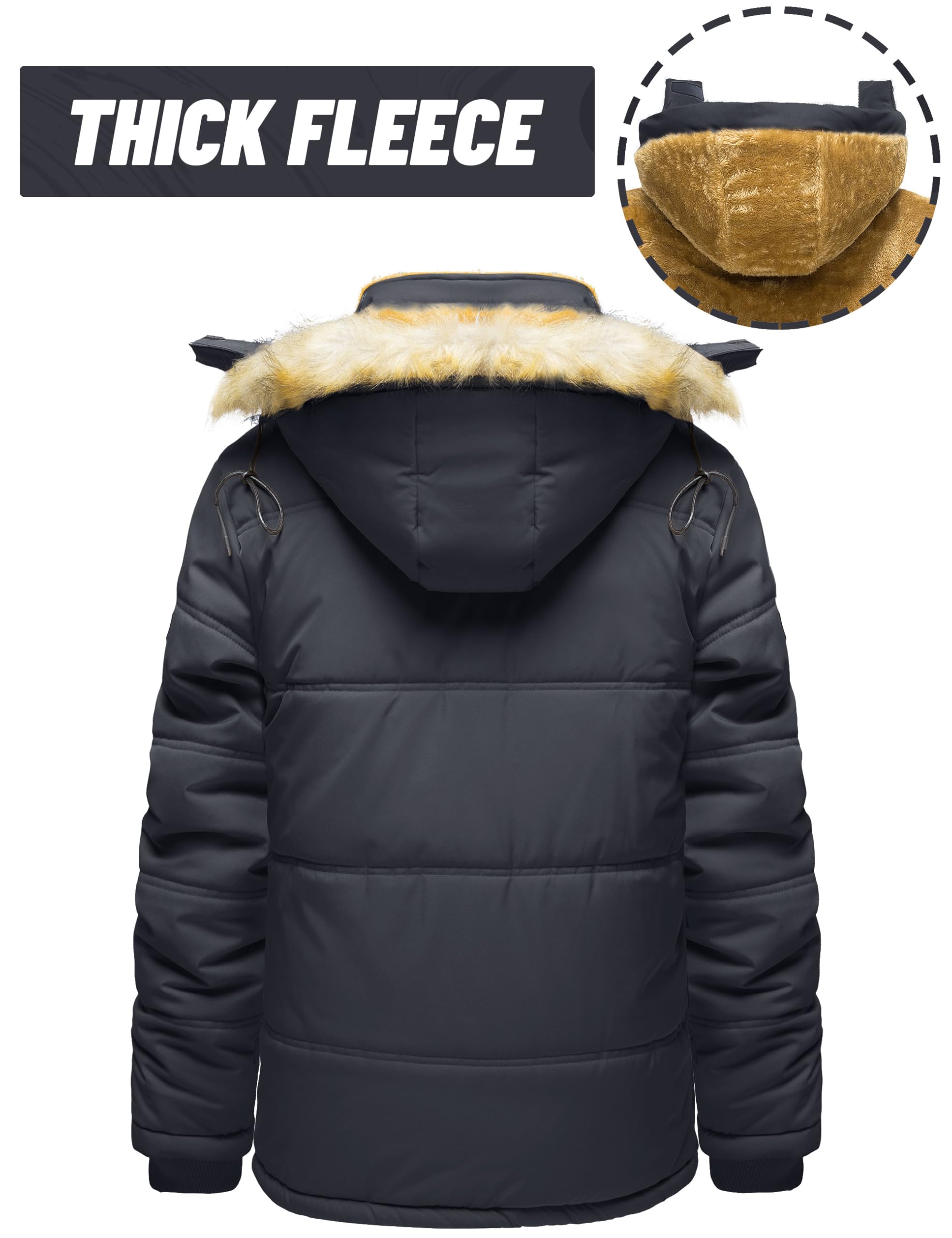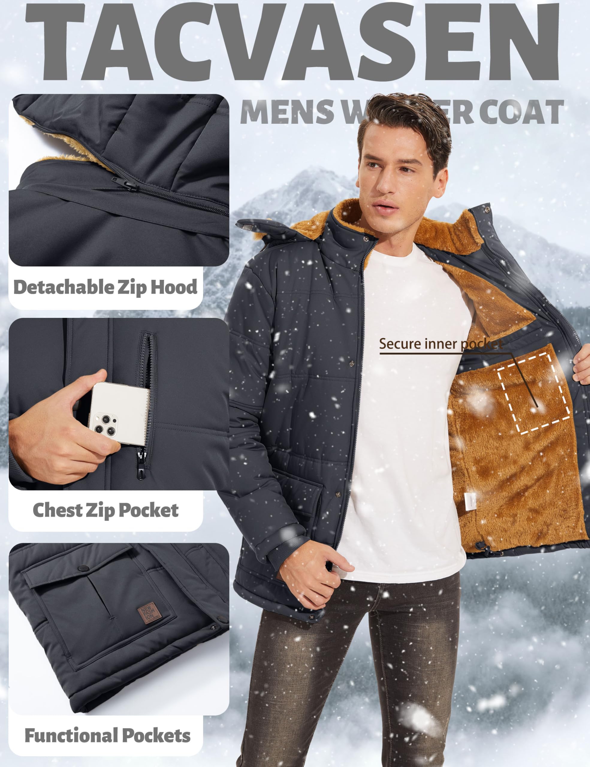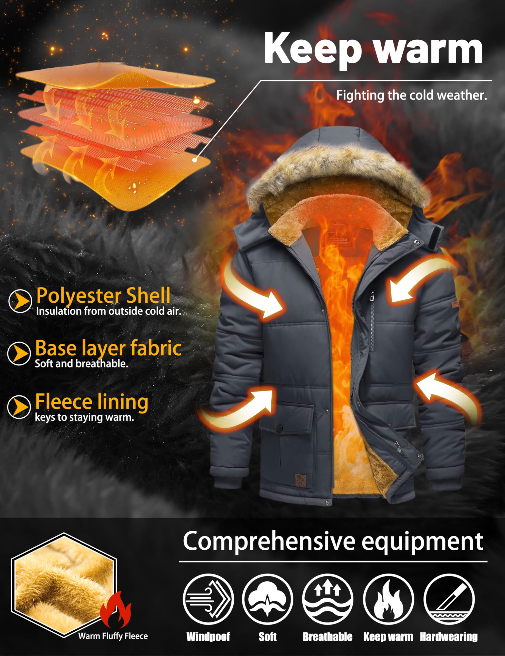 - [Warmth]Mens winter coat is crafted from windproof and snow-resistant material, lined with plush fleece, adequately equipping you to withstand the cold winter.