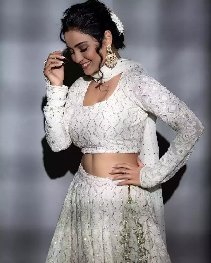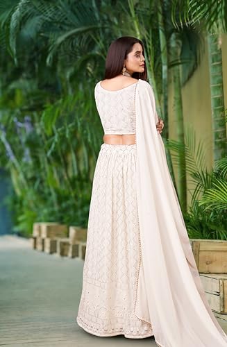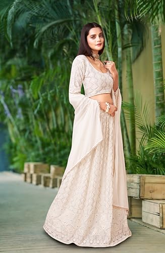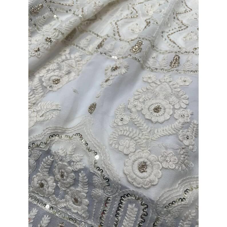 TRENDMALLS Georgette Embroidery Work Semi-Stitched Lehenga Choli With Dupatta For Women(L64-New-Bridal-Latest-Wedding-Sequnce-Lehenga-White-Designer-Free)