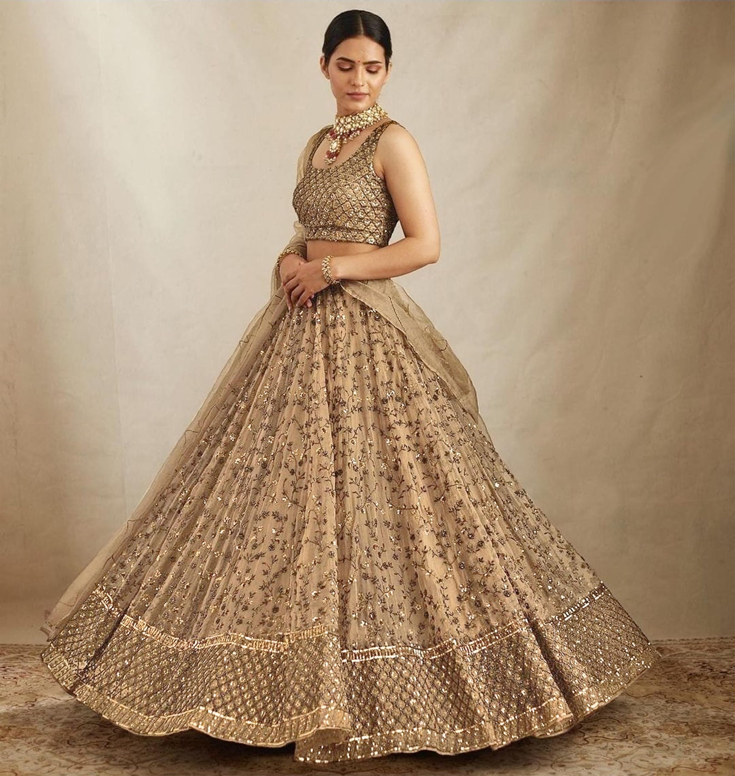 - Color: Lehenga: Gold; Choli: Gold; Dupatta: Gold
