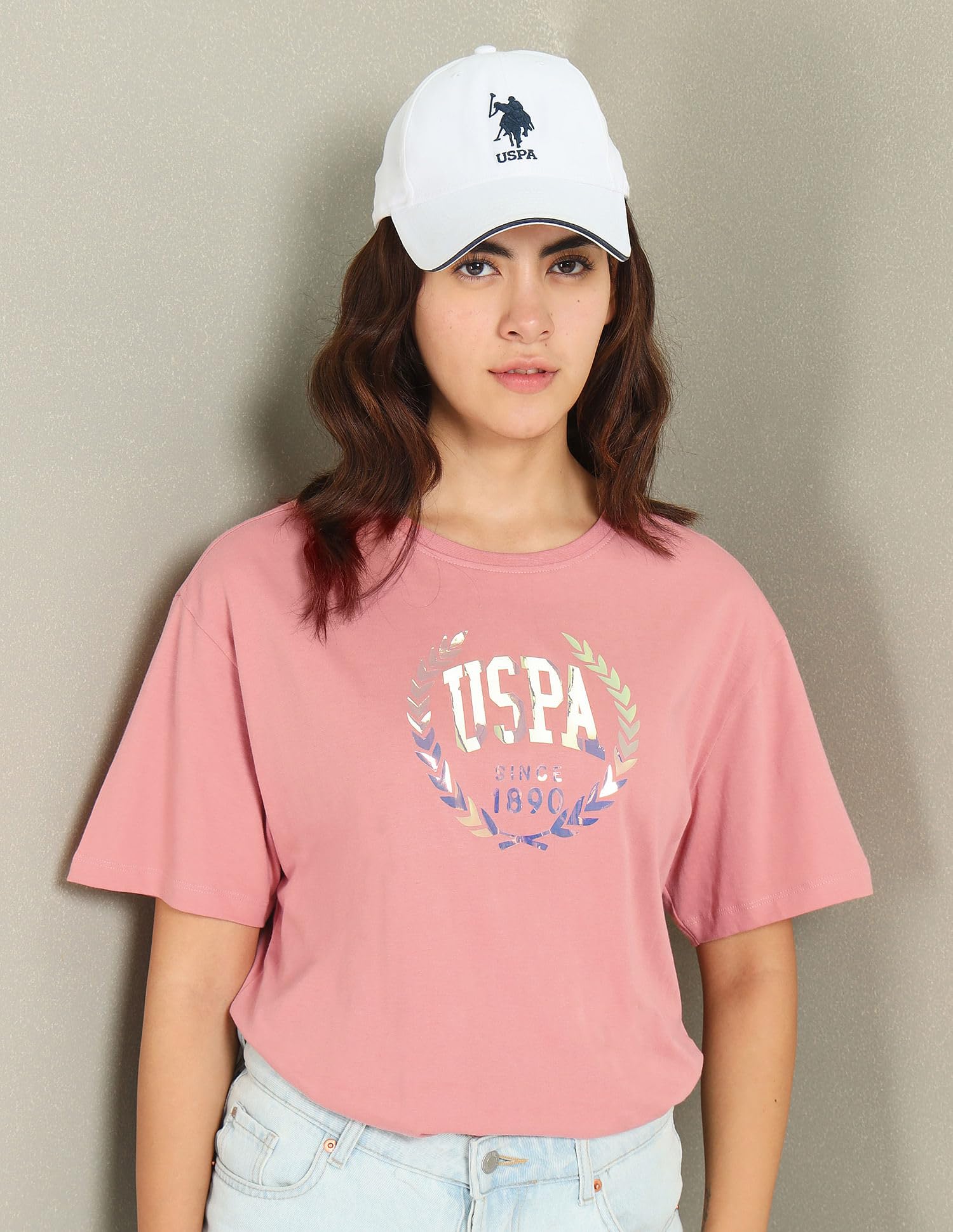 U.S. POLO ASSN. Cotton Women’s Brand Print Boxy Loose Fit T-Shirt (Uwss24Tsh124_Pink_M)