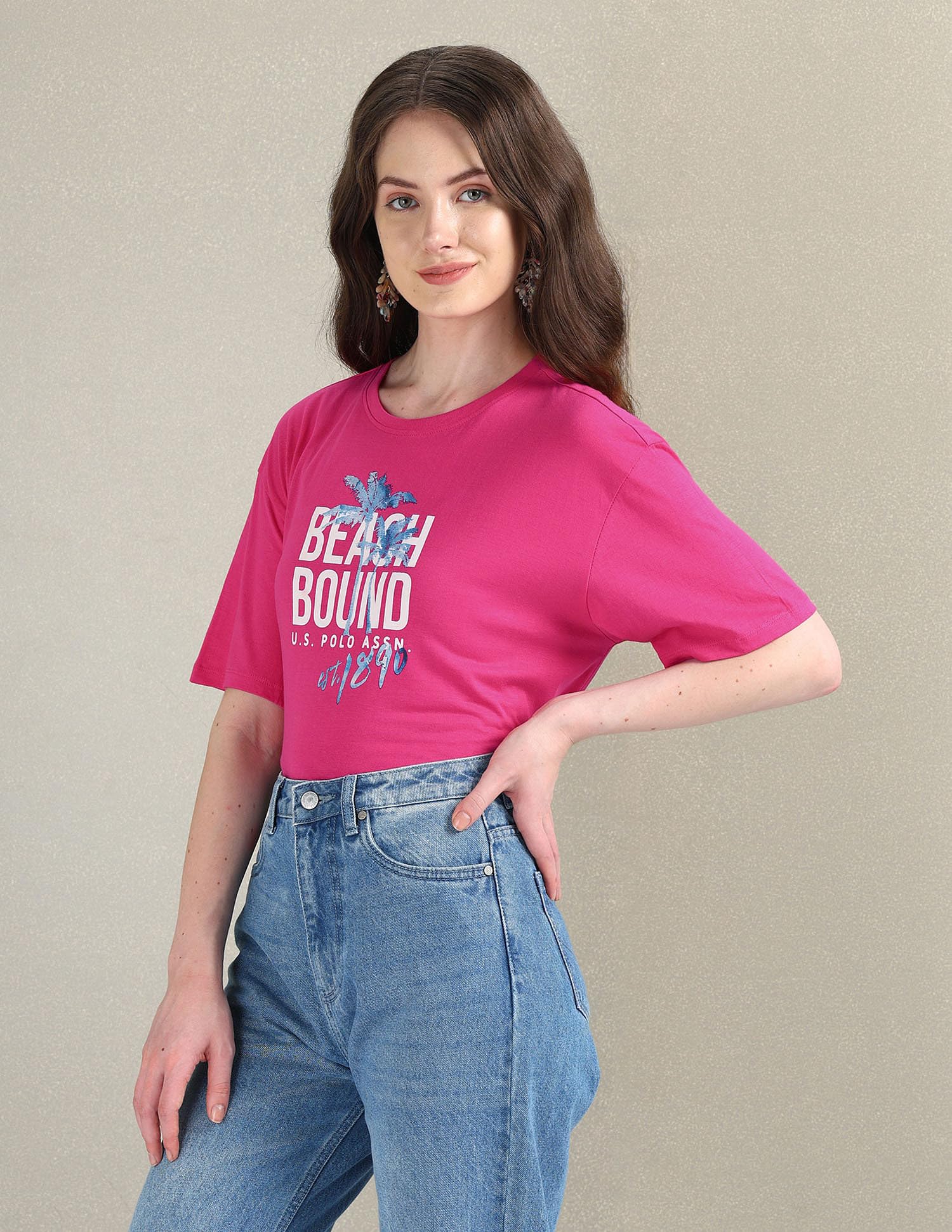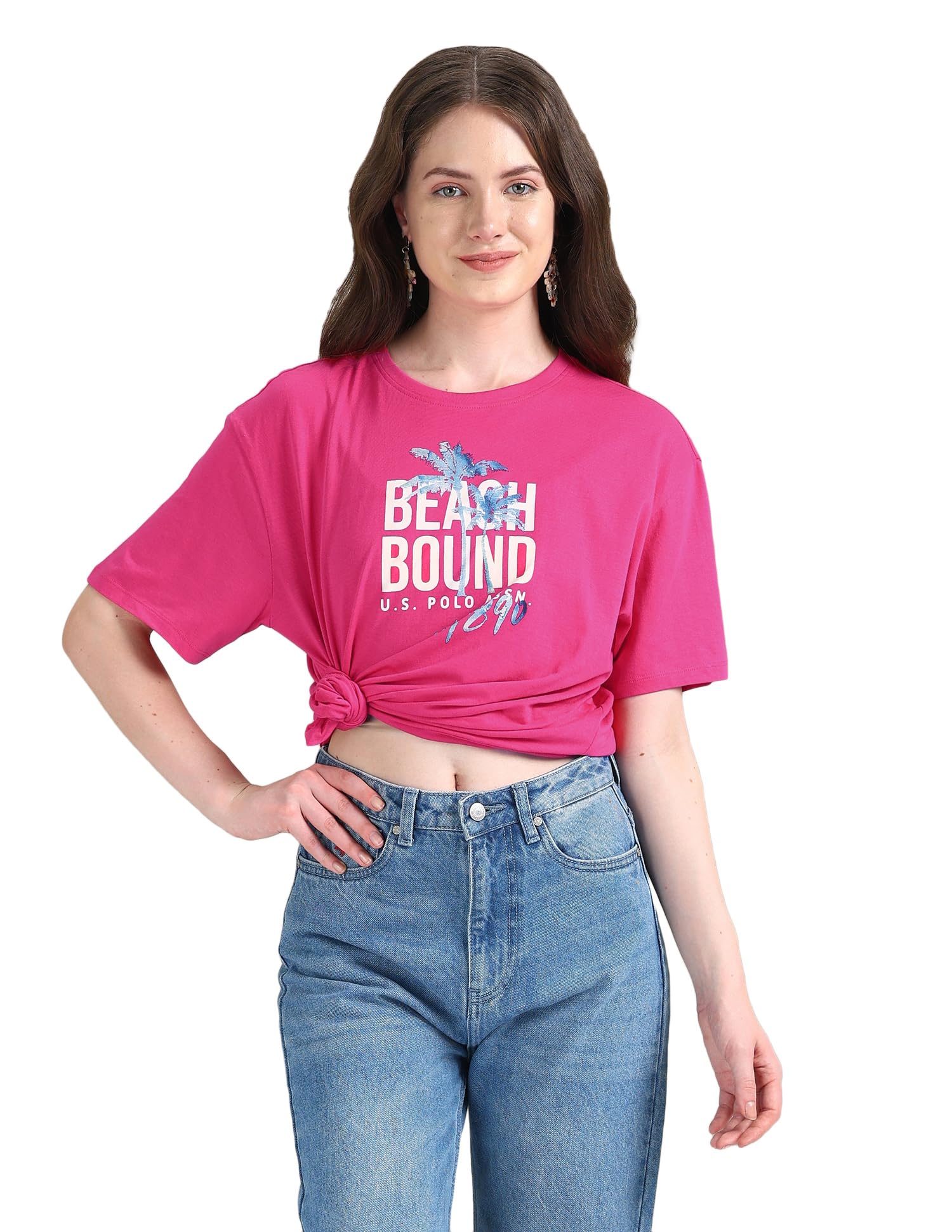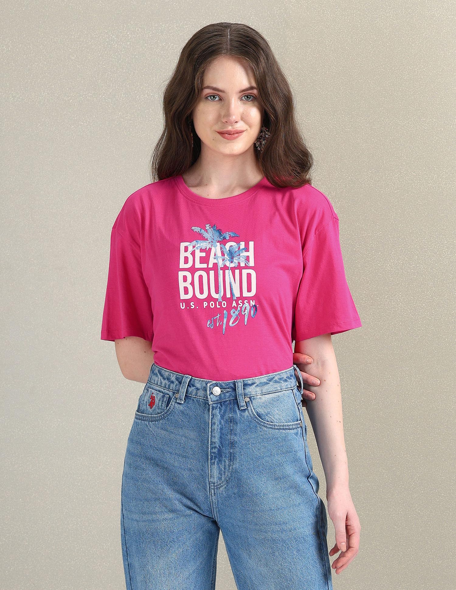 U.S. POLO ASSN. Women’s Typographic Print Boyfriend T-Shirt (UWSS24TSH112_Pink_L)
