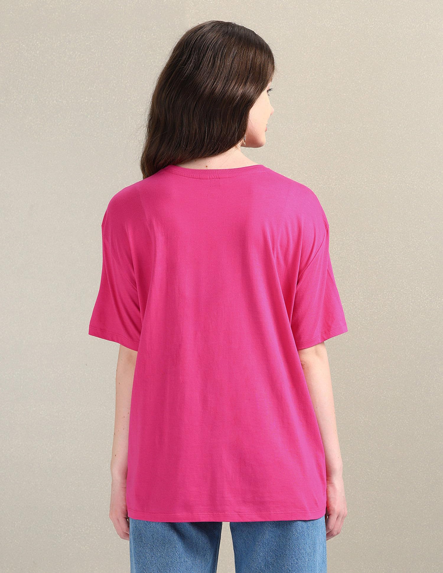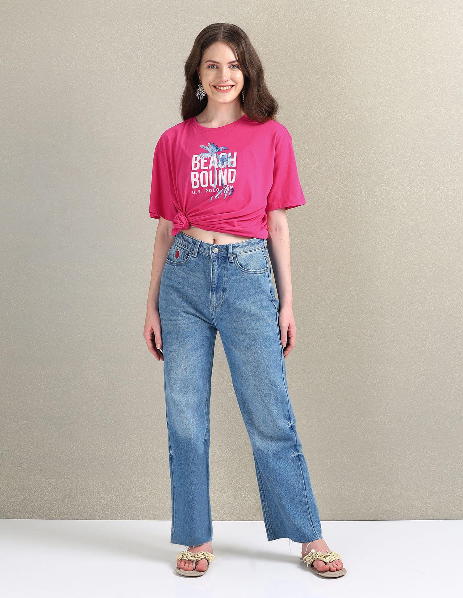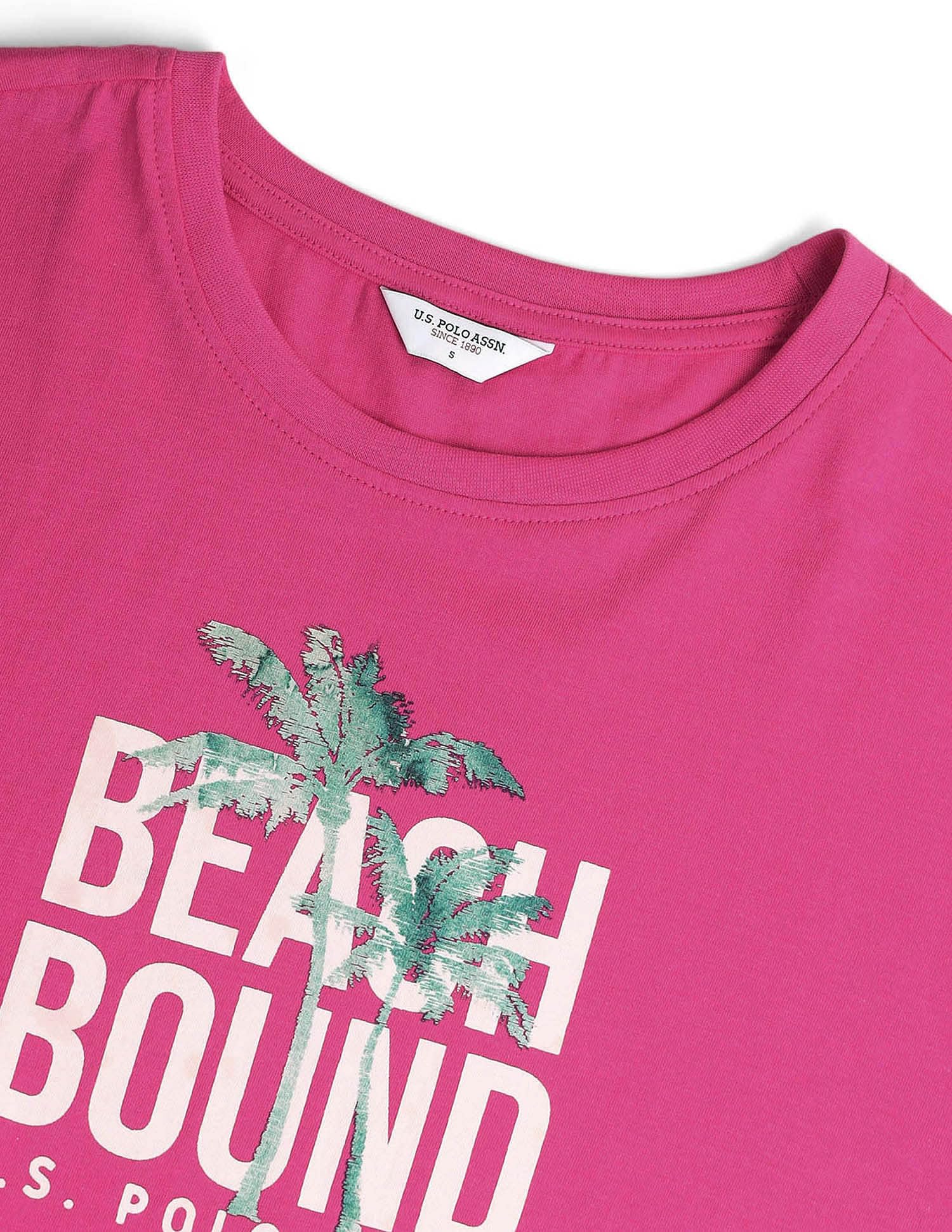 U.S. POLO ASSN. Women’s Typographic Print Boyfriend T-Shirt (UWSS24TSH112_Pink_L)