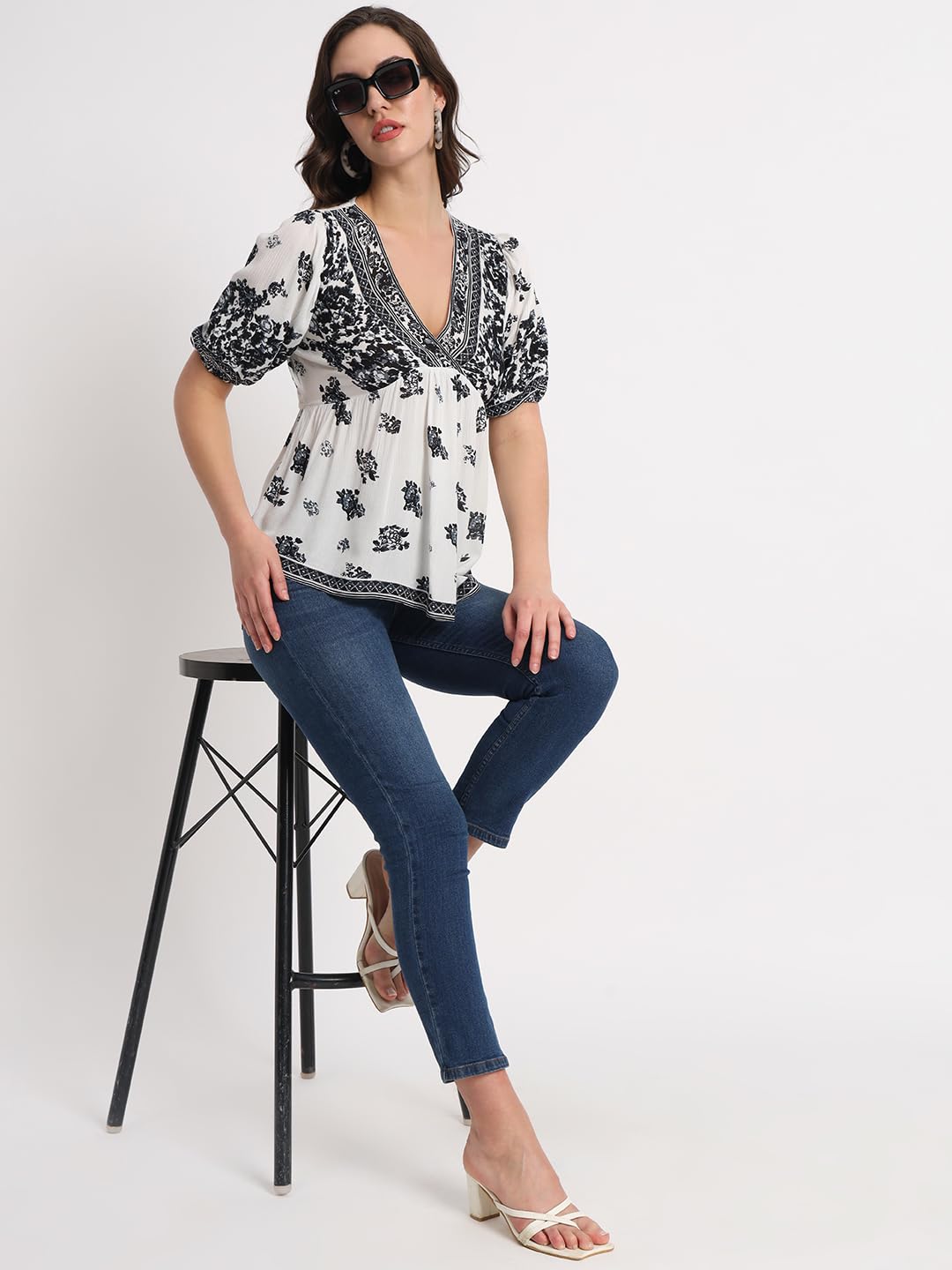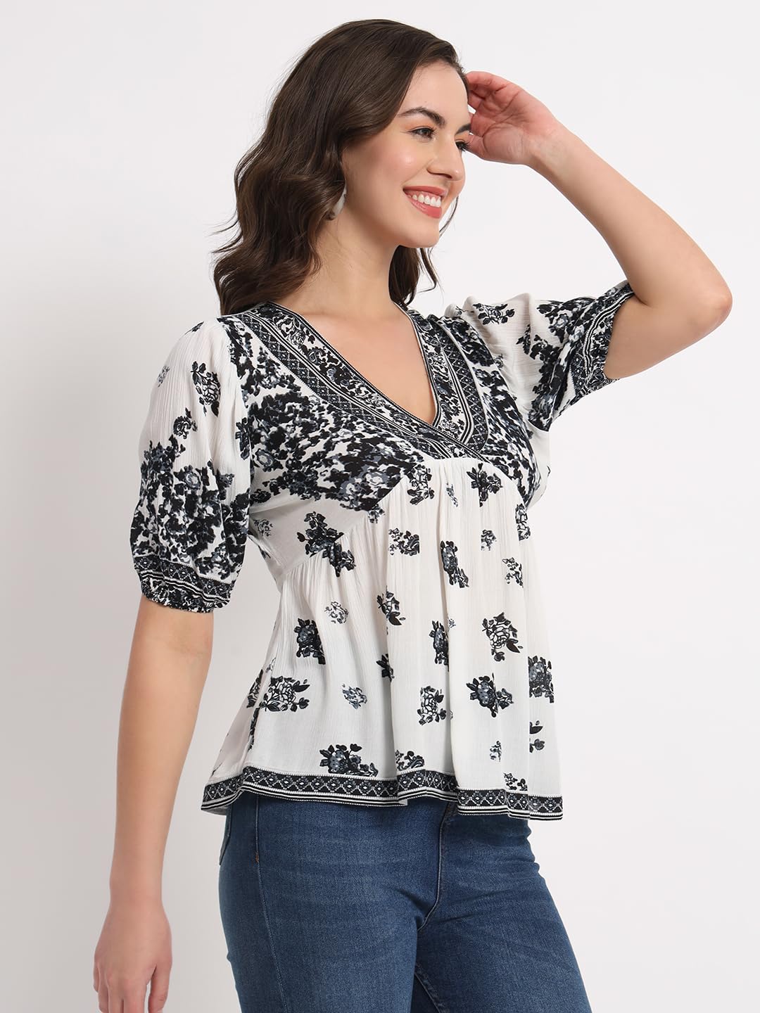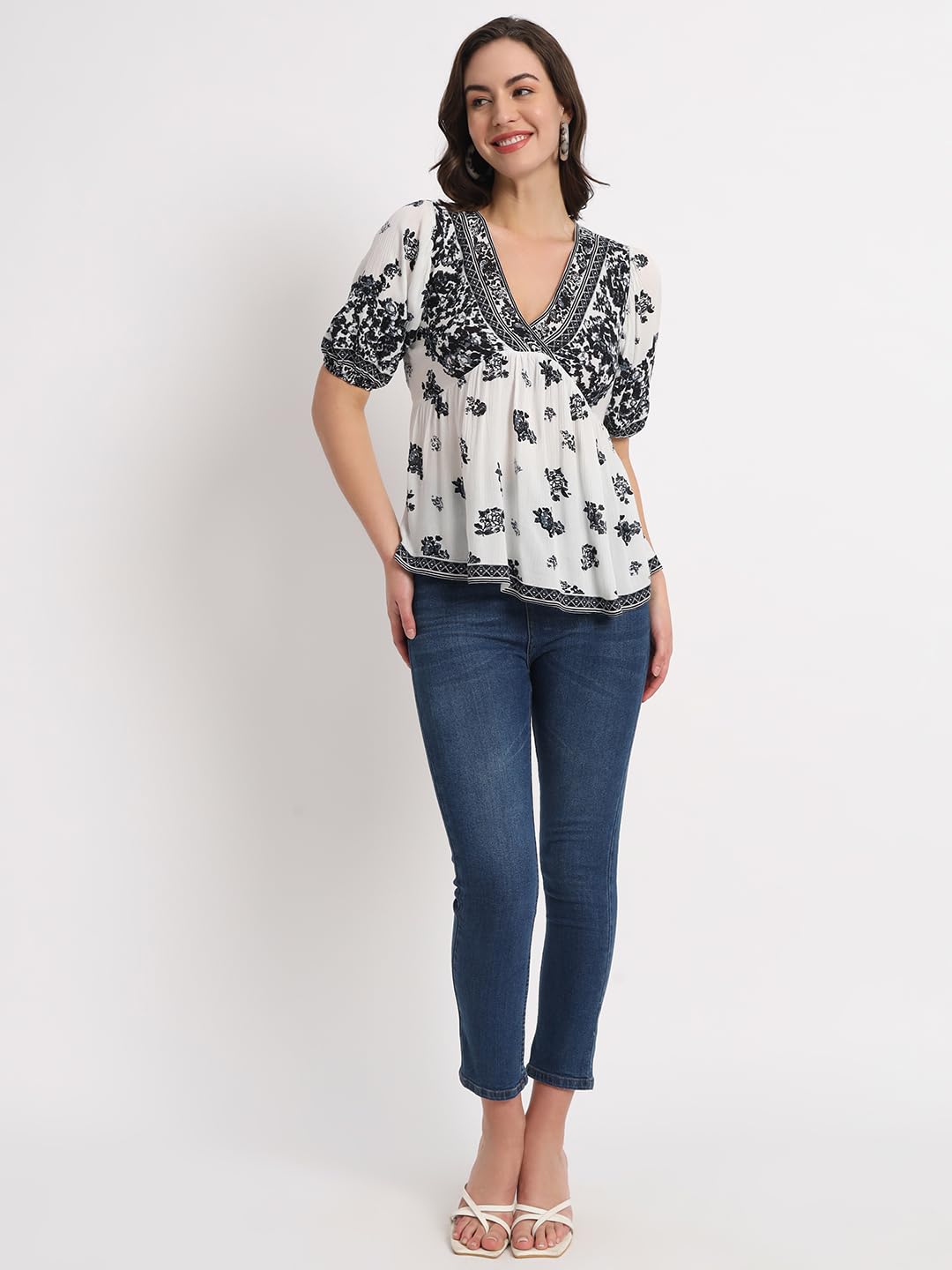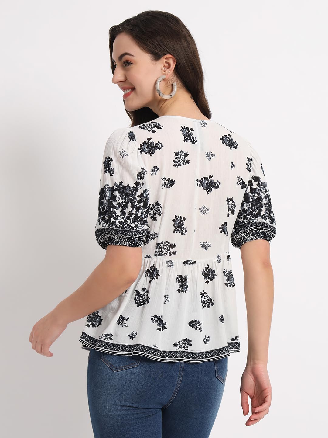 - Versatility: A casual white top with regular sleeves and a printed design is versatile and suitable for a range of occasions, from running errands to socializing with friends. The printed element adds a touch of personality.