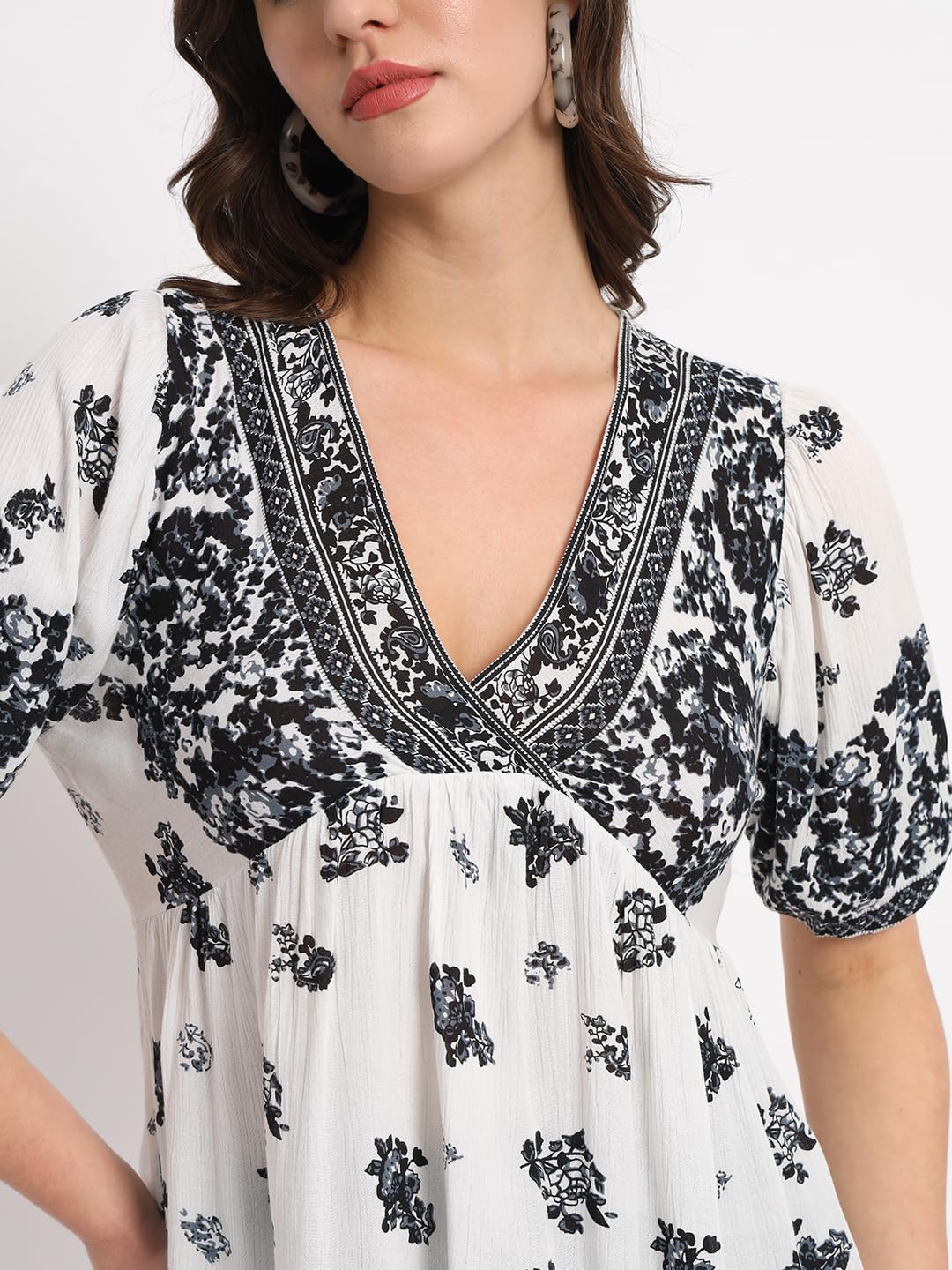 veldress21 Women’s Relaxed Fit Cotton Top Kurta Floral Printed Tunic Blouse Summer Fit And Flare Casual Stylish Short Kurta Half Sleeves Western (L) White