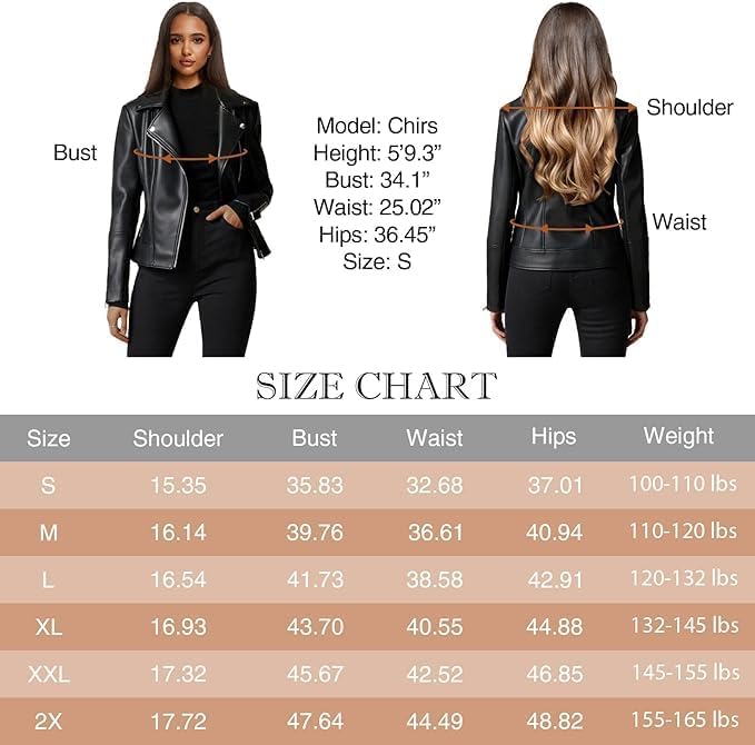 - Stylish Design: This women’s biker leather jacket features a sleek, edgy look that adds a touch of attitude to any outfit.