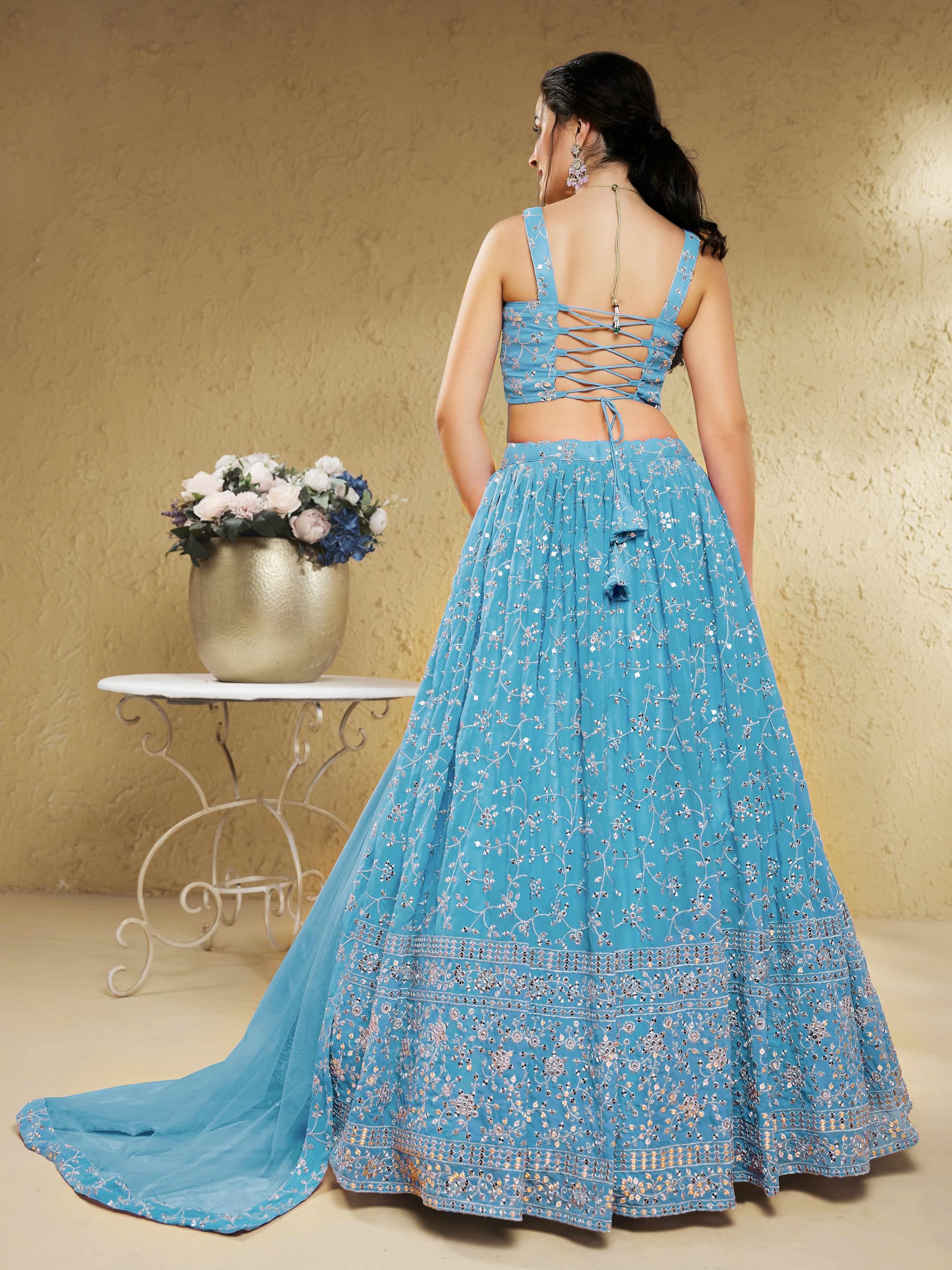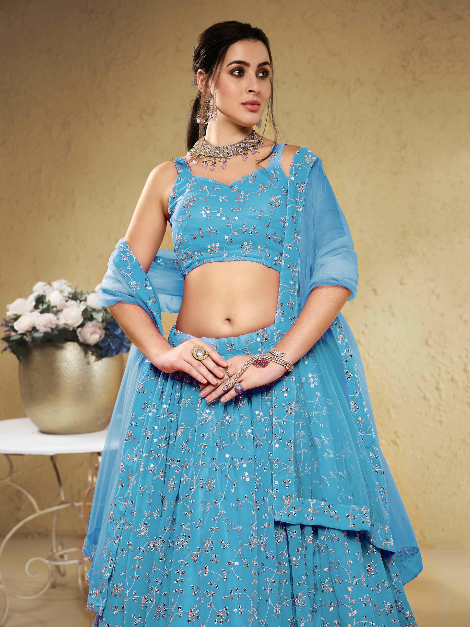 Zeel Clothing Womens Georgette Lehenga Choli Semi-Stitched Skyblue Wedding Bridal Free Size