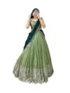 - Measurements: Lehenga(Semi-Stitched) Flair : 3.50mtr, waist-43″, height-43″; Blouse(Unstitched) Size: up to 44″; Dupatta Length: 2.25 mtr