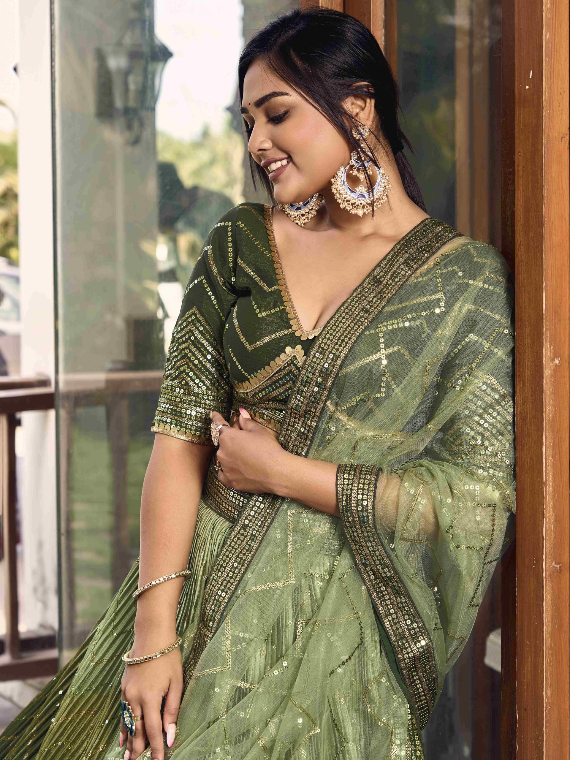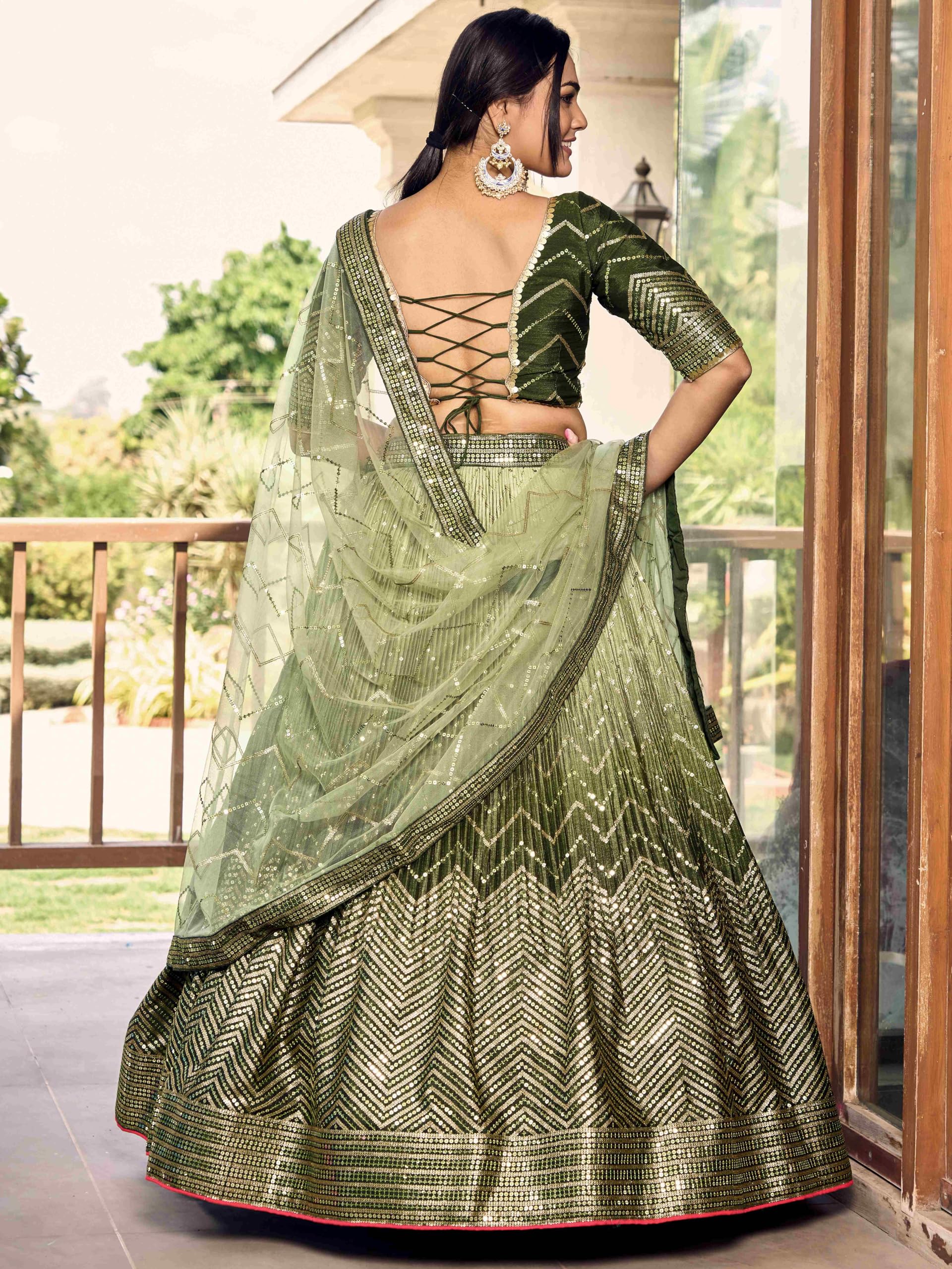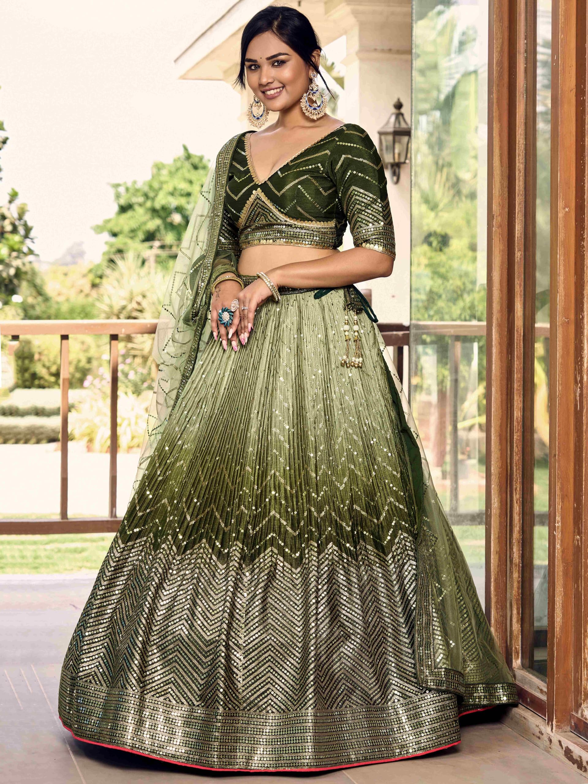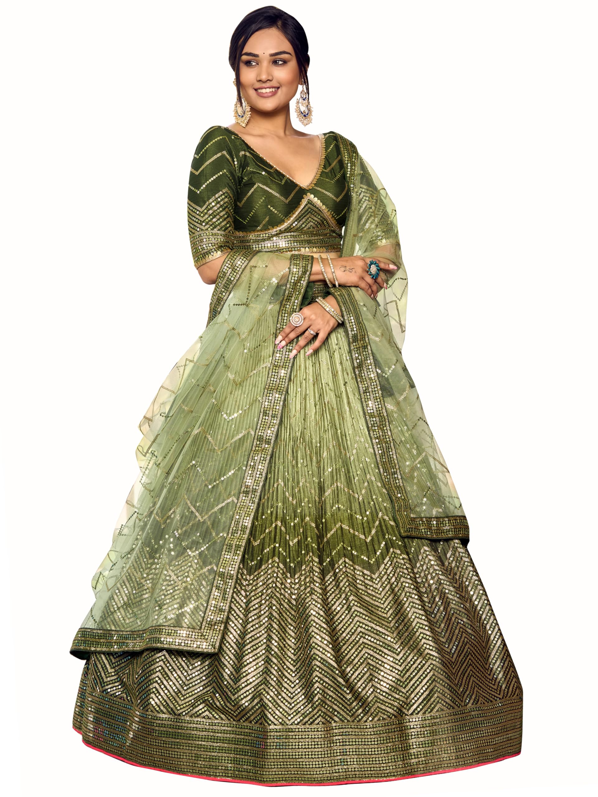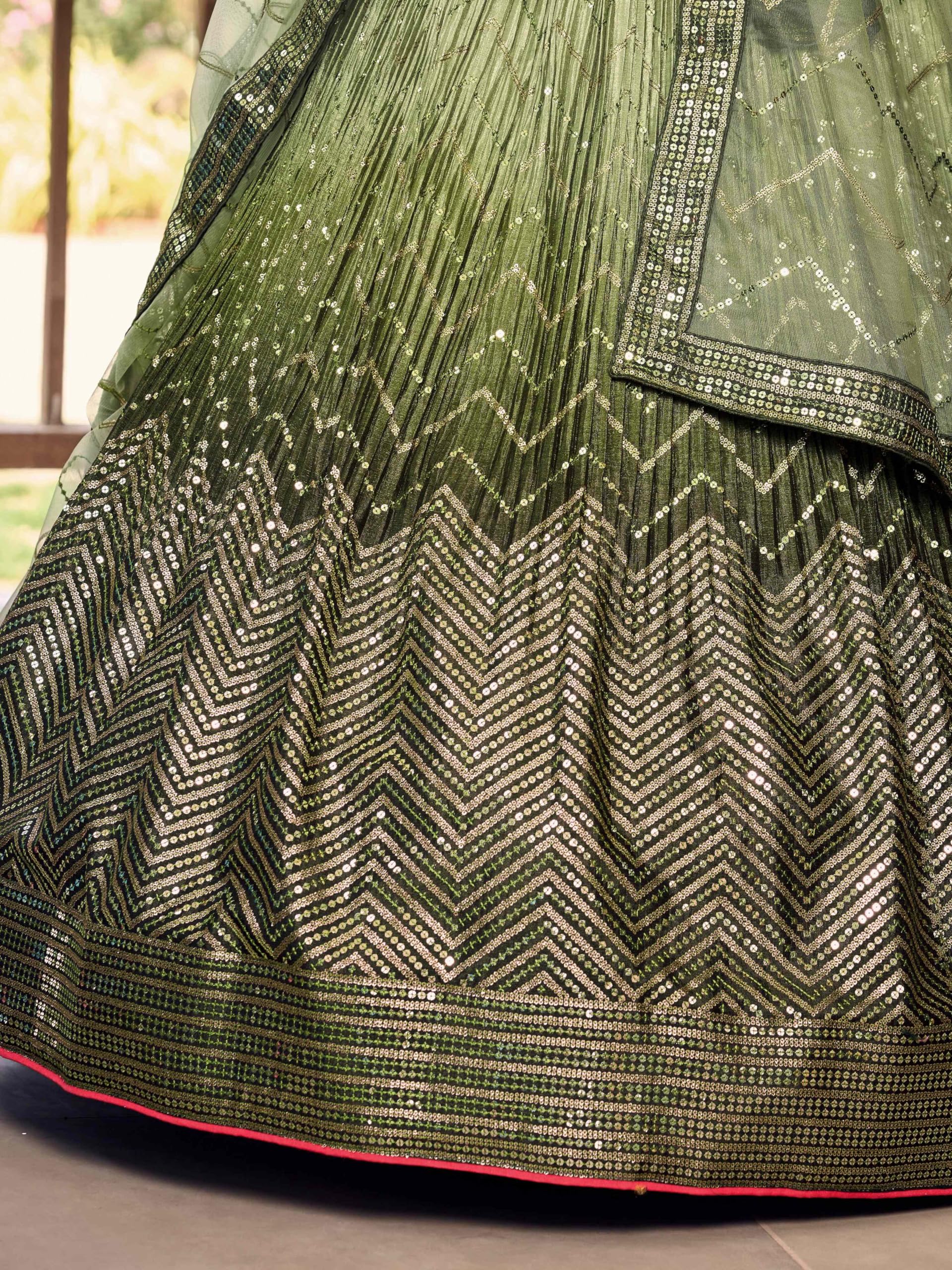 Zeel Clothing Women’s Zari & Sequins Embroidered Art Silk New Semi-stitched Lehenga Choli With Dupatta (5057-Green-Womens-Lehenga-Choli-Latest; Free Size)