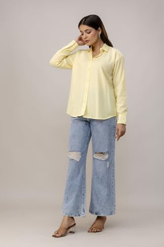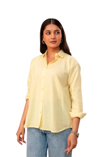 ANNA MONNA Women’s Linen Blend Shirt | Casual Collared Button Down Shirt for Women | Solid Color Full Sleeve Oversized Fit | Summer Casual & Office Wear Top (in, Alpha, 5XL, Plus, Pastel Yellow)