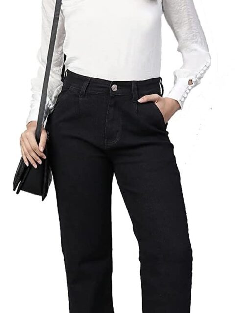 ADBUCKS Women Straight Fit High Rise Jeans (28, Black)