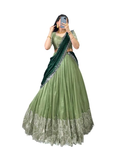 Aika Creation Women’s Chiffon Embroidered Lehenga Choli Panvel LH Pista