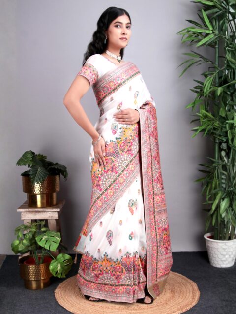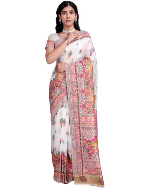 Ambararambh Saree Women’s Pashmina Kashmiri Silk Saree with Blouse Piece, Traditional Indian Wear