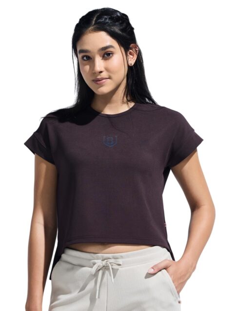 DOMIN8 Women’s Solid Regular Fit T-Shirt (SS25EIM0WTS31_Brown